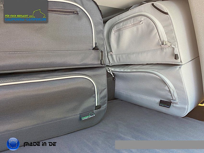 Si buscas una solución versátil para organizar tu equipaje en la furgoneta, las alforjas modulares de 3 compartimentos son la opción perfecta. Diseñadas para VW T5/T6/T6.1 Multivan y California Beach A3 (asiento triple), permiten aprovechar el espacio muerto de las ventanas traseras sin sacrificar comodidad ni estética.