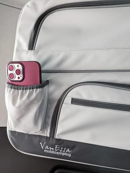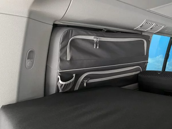 Maximiza el espacio de almacenamiento en tu furgoneta Volkswagen con la Alforja para Ventana Trasera, diseñada específicamente para modelos T5/6/6.1. Esta solución de almacenamiento versátil te permite aprovechar al máximo cada rincón de tu vehículo mientras mantienes tus objetos perfectamente organizados, con el interior oscurecido y aislado.