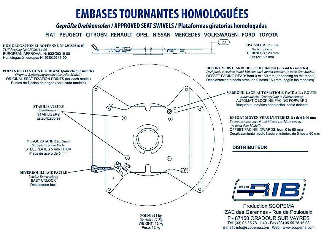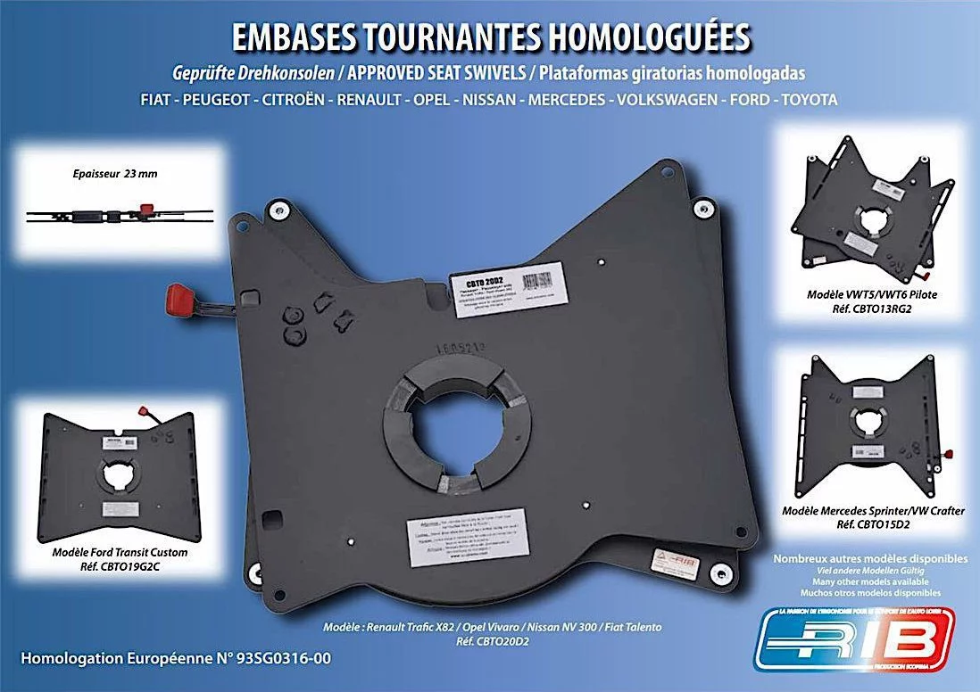 Plataformas giratorias homologadas SCOPEMA para asientos de piloto y copiloto.