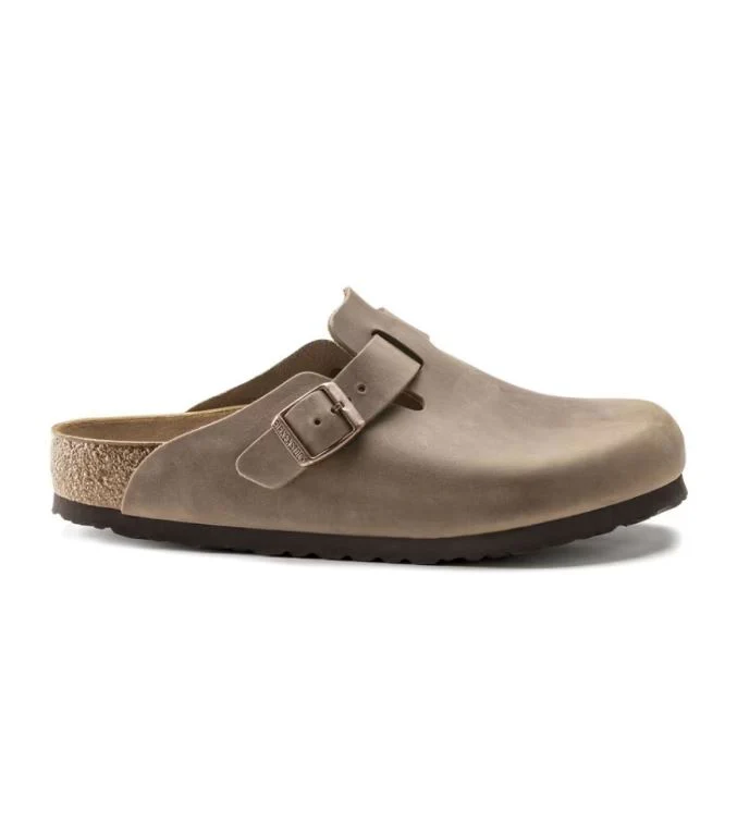 Descubre los zuecos Birkenstock Boston Narrow Fit en cuero engrasado Marrón Tabaco, diseñados para confort duradero y estilo atemporal. Ideal para pies estrechos, con plantilla de corcho que se amolda al pie y cuero durable que mejora con el tiempo. Perfectos para cualquier ocasión, desde la playa hasta salidas urbanas. Equipados con hebilla ajustable y suela EVA ligera para máximo soporte. ¡Compra ahora y vive el equilibrio perfecto entre moda y funcionalidad!