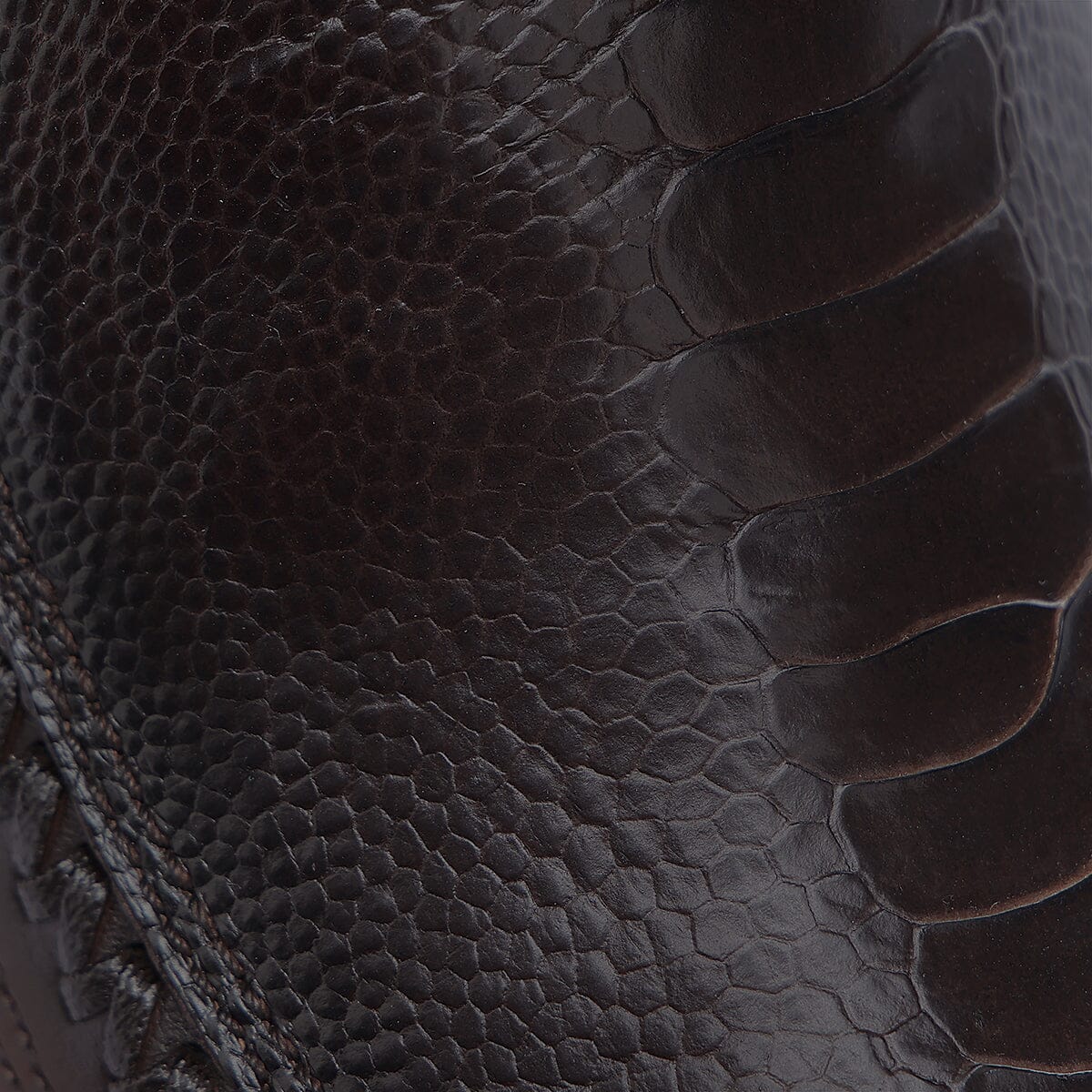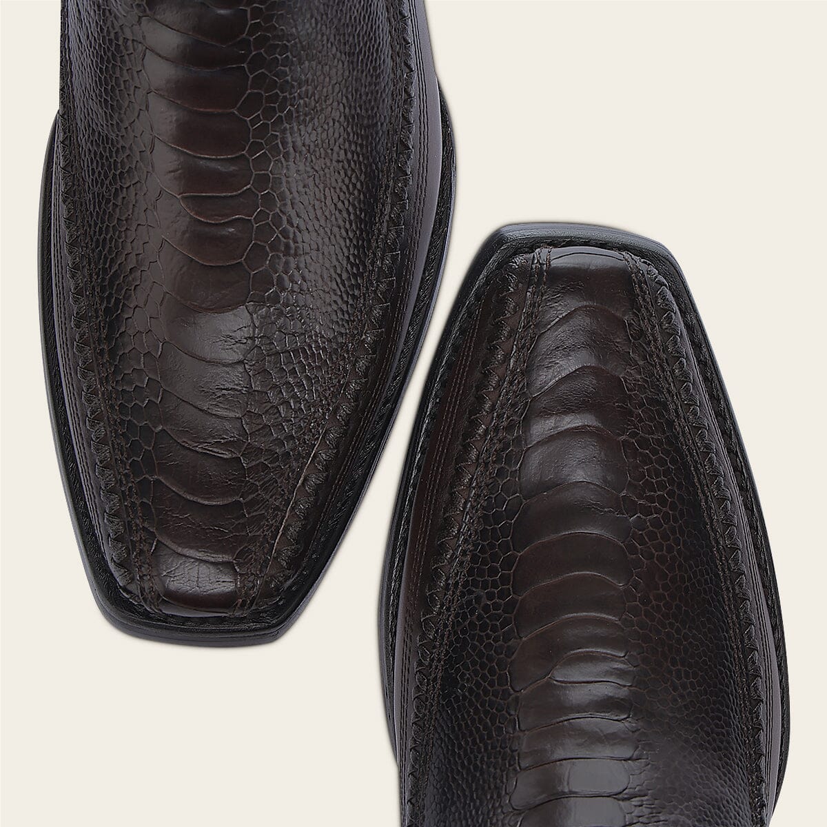 Bota casual para caballero en piel genuina de pata de avestruz y piel de bovino. Presenta grabado láser de logotipo Cuadra al frente y en los costados y detalles de tejido artesanal que enmarcan la piel de pata de avestruz. Ajustada con cierre interno. Con suela de cuero con injerto de TPU.