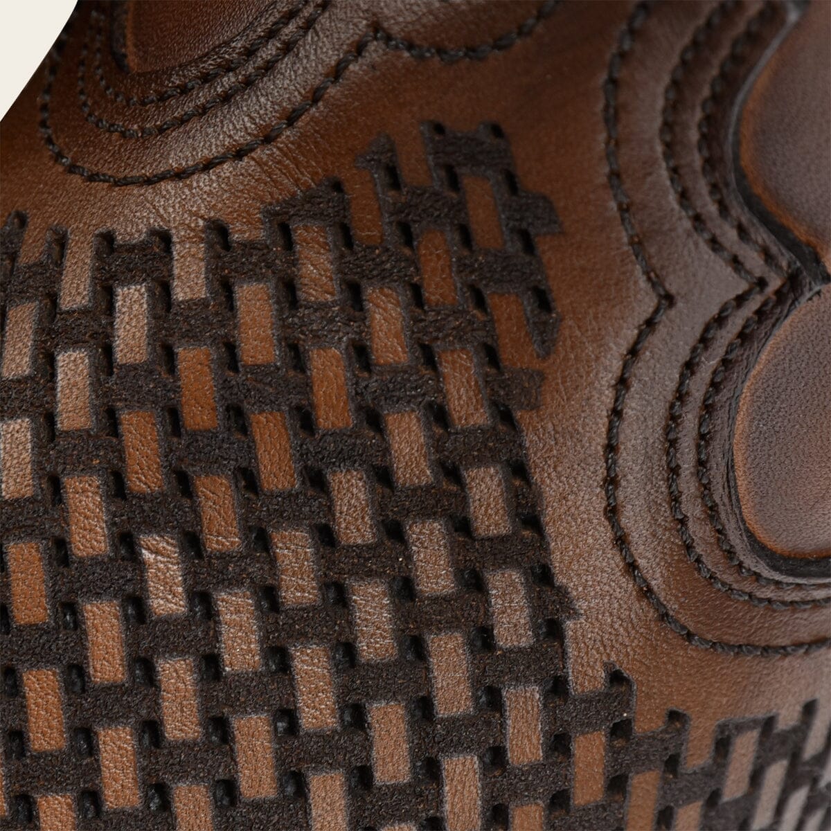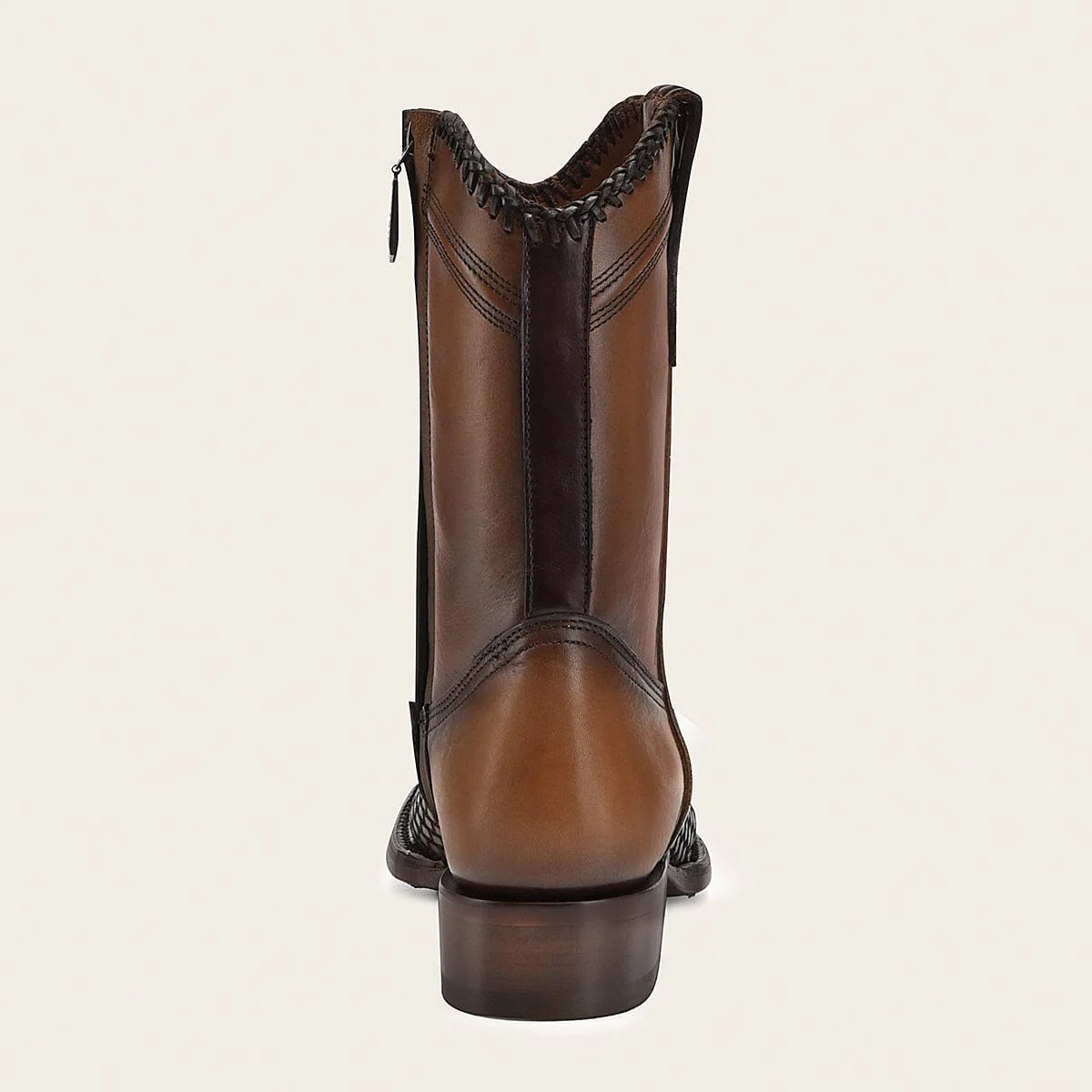 Bota para caballero en piel genuina de bovino. Con grabado láser de logotipo Cuadra en tubo. Chinela con detalles de grabado láser. Cuenta con tejidos artesanales. Ajuste interno de cierre. Suela de cuero con TPU.