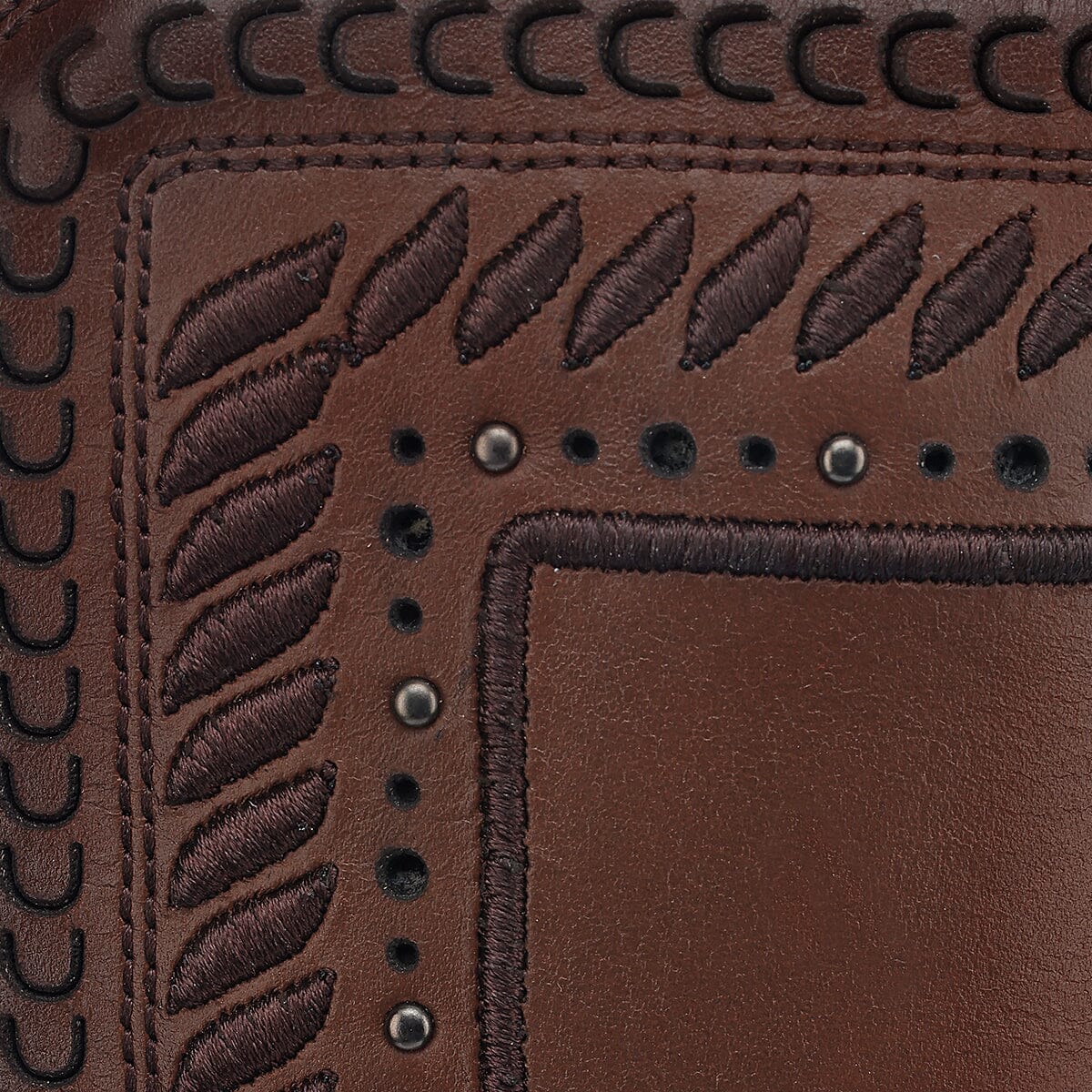 Bota alta casual para dama en piel genuina de bovino. Cuenta con detalles de bordado en alto relieve y perforaciones con contraste de texturas en la parte posterior. Ajustada con cierre interno. Suela de cuero con injerto de TPU.