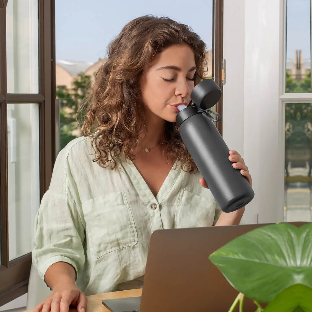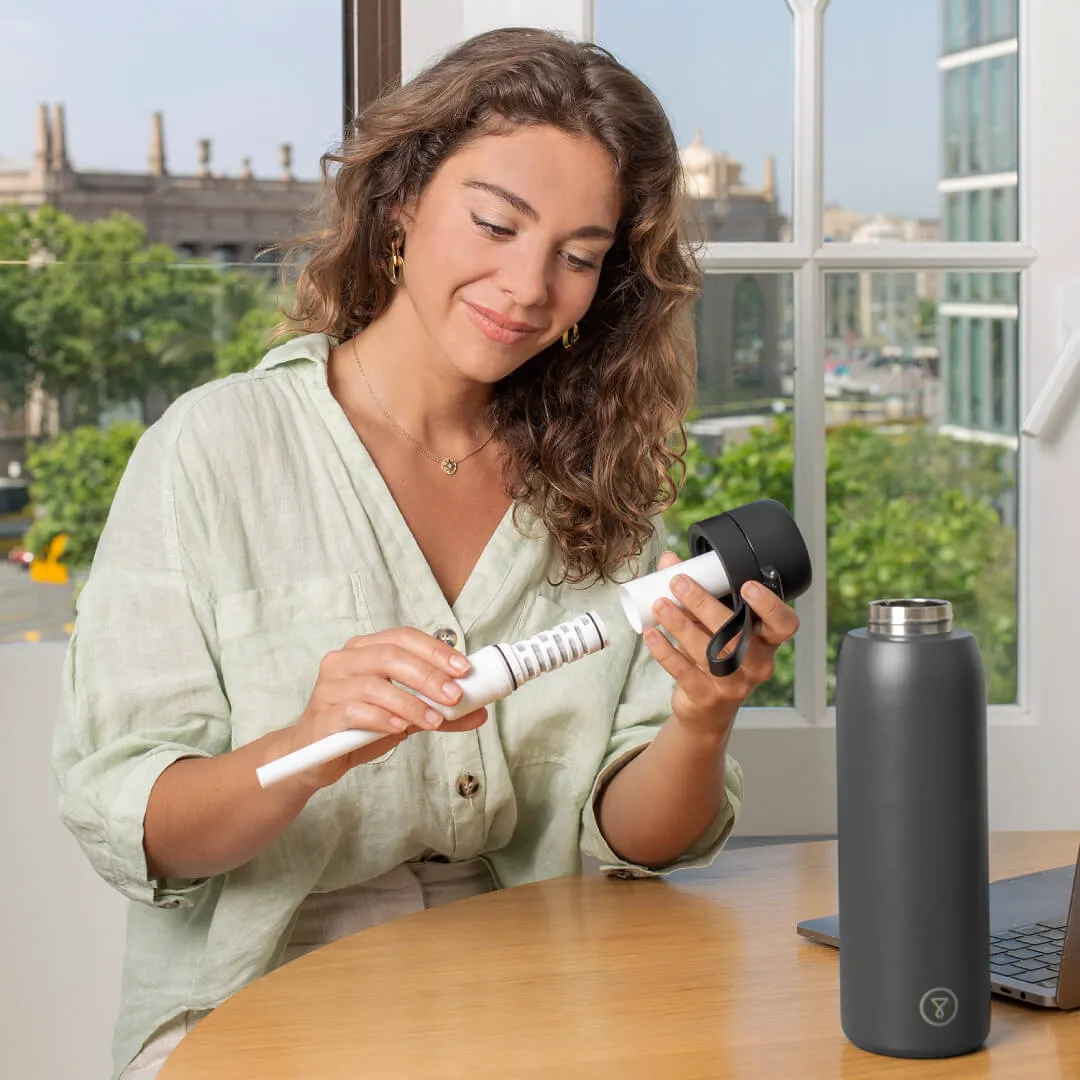 Nunca fue tan fácil dejar de comprar botellas de agua de plástico. Con esta botella de agua de acero con filtro incorporado podrás filtrar el agua en cualquier lugar que se te ofrezca. Tiene una capacidad de 750 ml y mantiene el agua fría durante 24 horas.