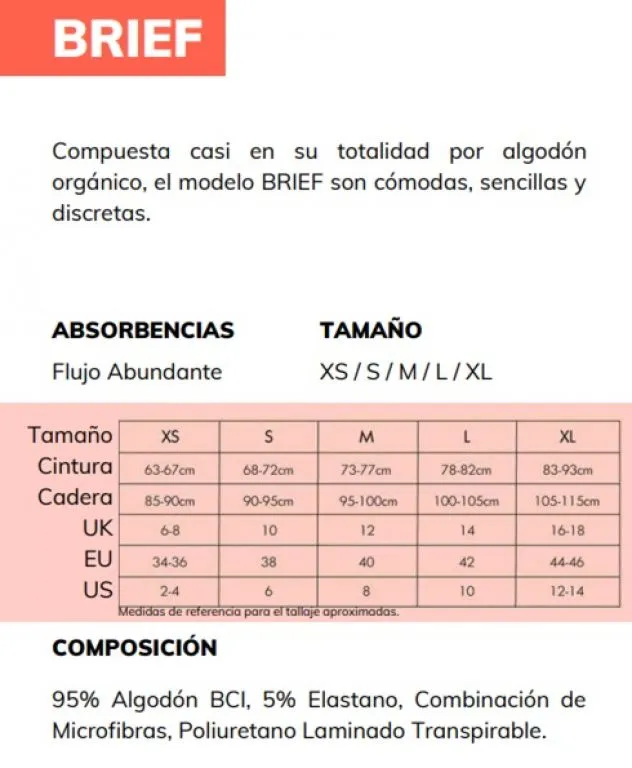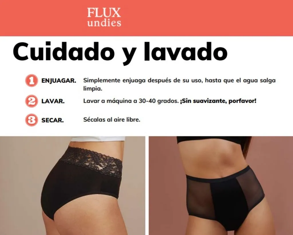 - No usar lejía ni suavizante ni jabones grasos tipo jabón de Marsella (puede reducir la absorbencia de la braga)