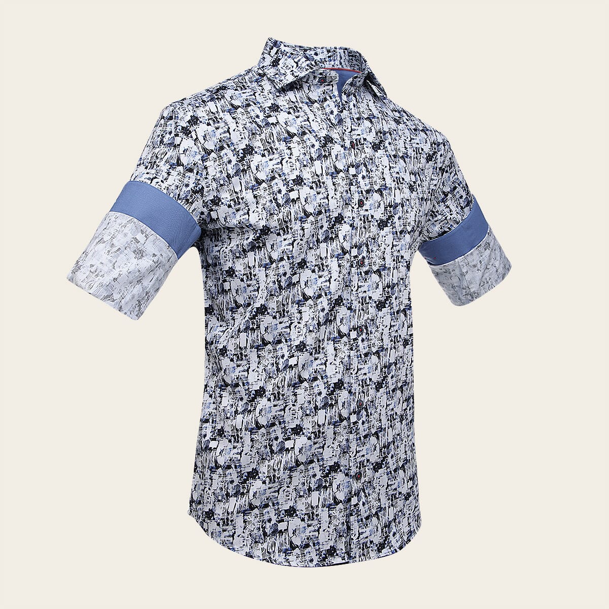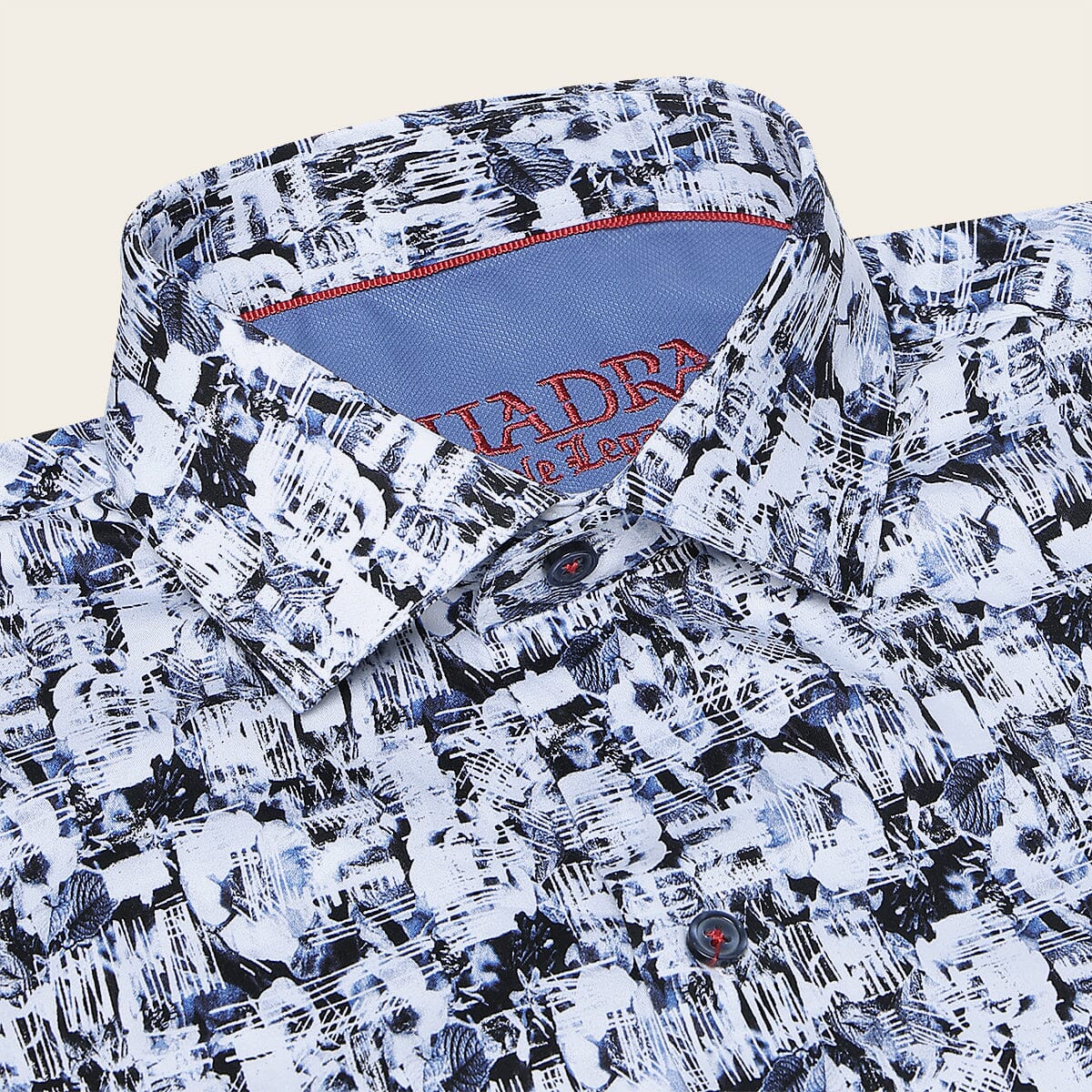 Camisa Cuadra para caballero. Presenta sutil estampado en contraste de color. Ajustada con botones al frente y en mangas.