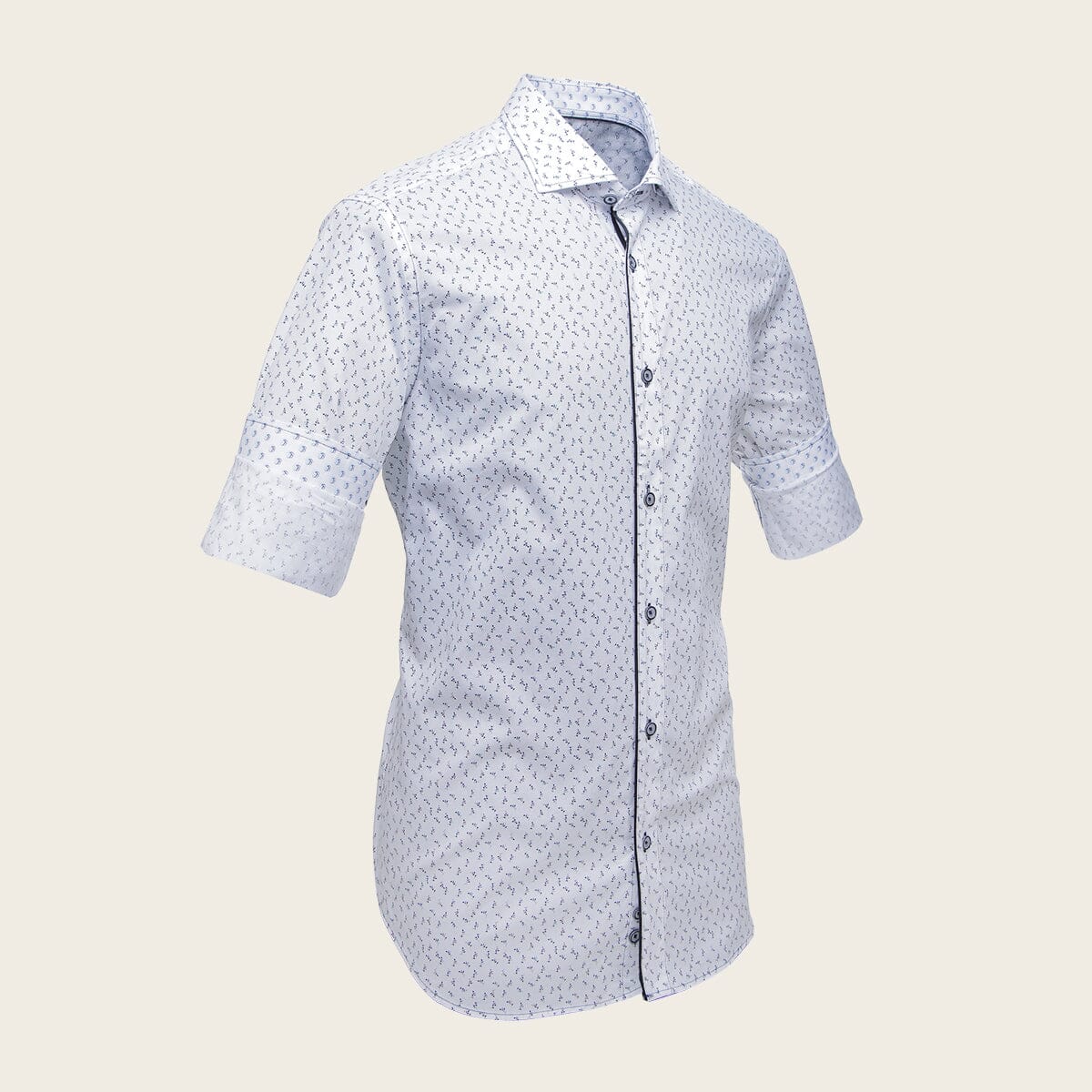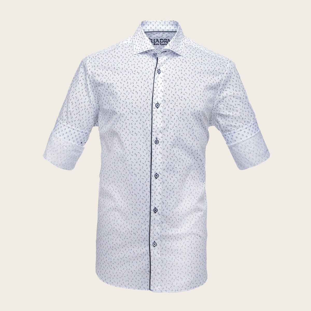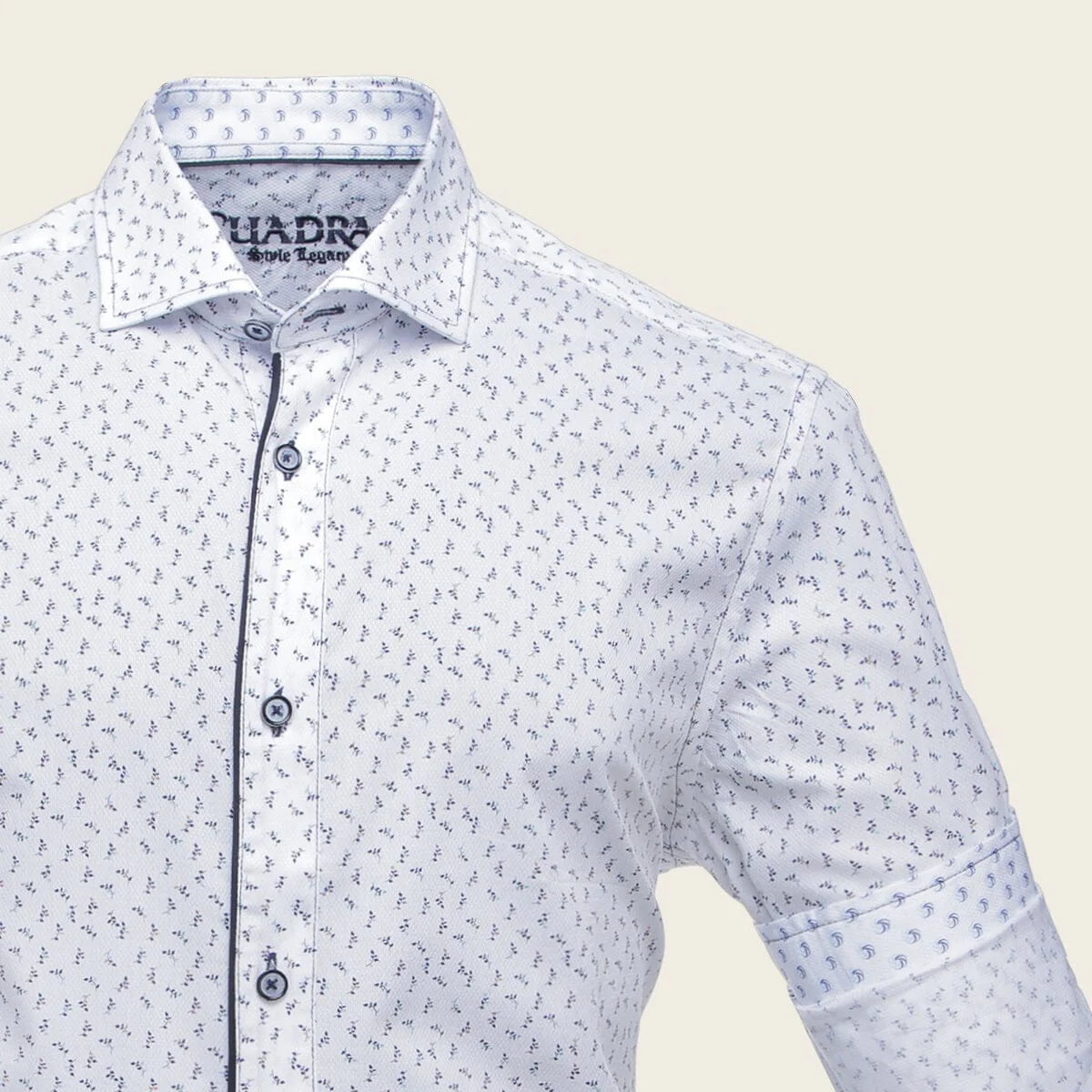 Camisa Cuadra para caballero. Presenta estampado en motivos orgánicos en colores contrastantes. Ajustado con botones en mangas y al frente. Con logotipo Cuadra bordado en la parte interna.