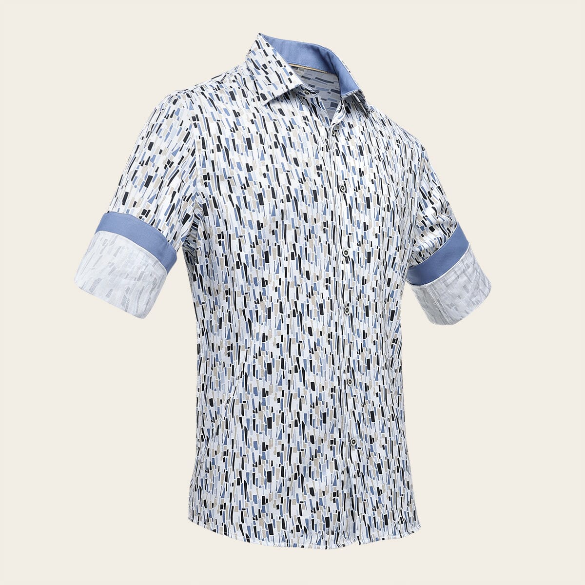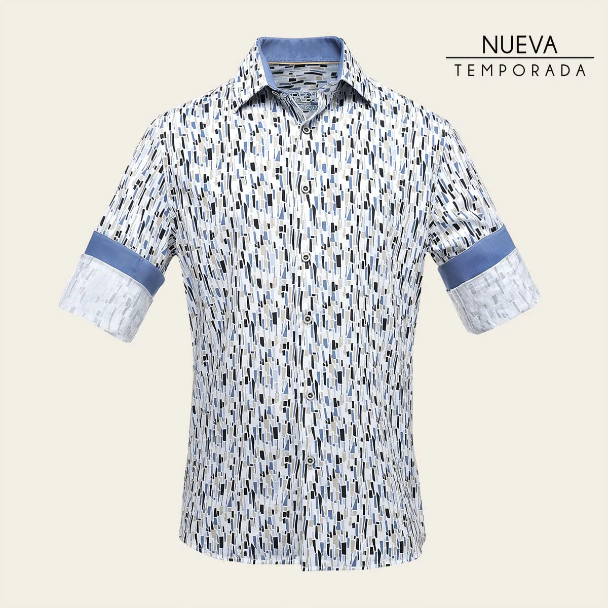 Camisa Cuadra para caballero. Presenta estampado en contraste de color con motivos geométricos. Ajuste con botones al frente y en puños. Composición 100 % algodón Corte: Slim fit.