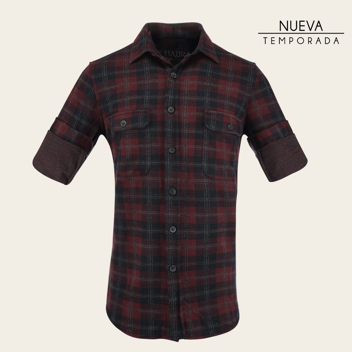 Camisa Cuadra para caballero. Cuenta con dos bolsillos en el área del pecho y estampado de cuadros con contraste de color. Ajustada con botones. Composición: 55% algodón, 30% viscosa, 15% poliéster.