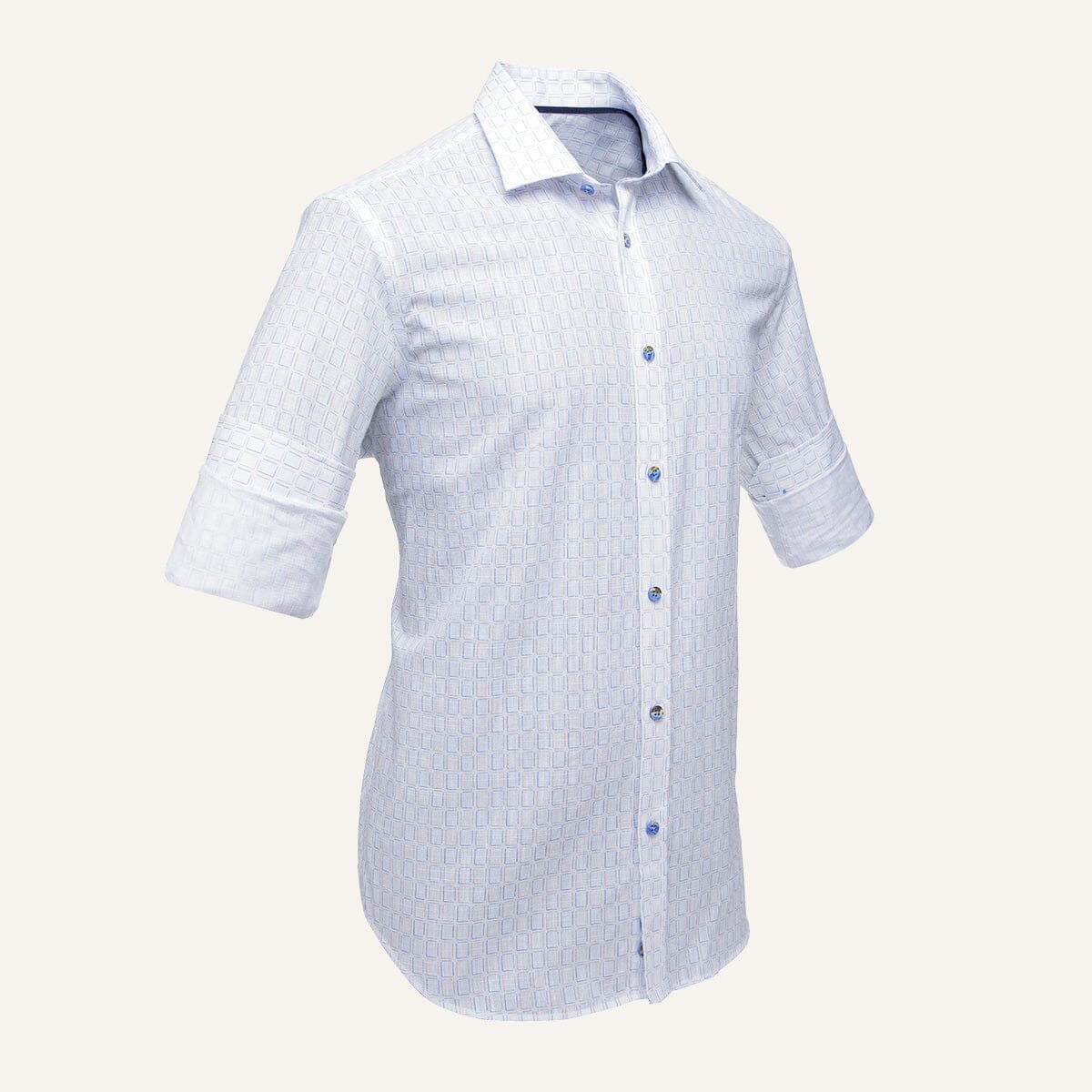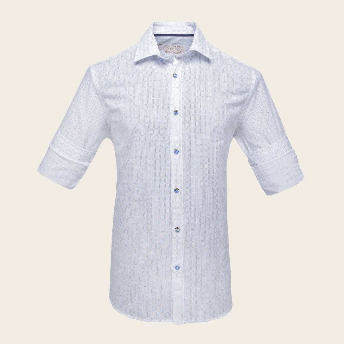 Camisa Cuadra para caballero. Presenta estampado en motivos orgánicos en colores contrastantes. Ajustado con botones en mangas y al frente. Con logotipo Cuadra bordado en la parte interna.