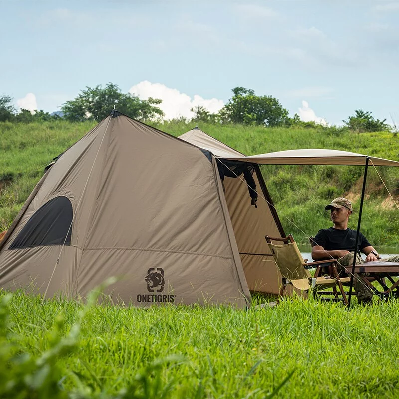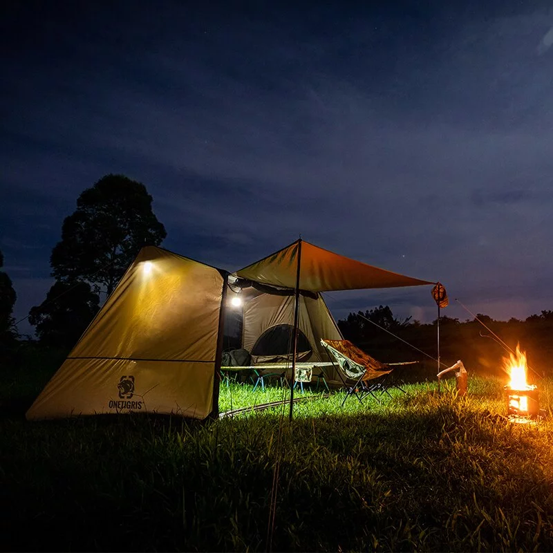 Opción de configuración de porche para usar con sillas y mesas de camping, etc.