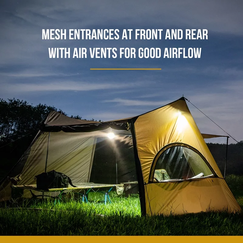 Espacio de 4,4 pies por 7 pies para hasta 2 campistas con espacio para equipo y mochilas