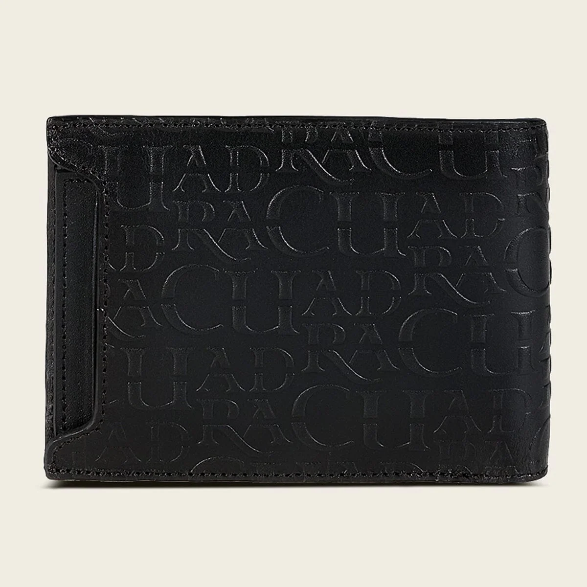 Cartera para caballero en piel genuina de alligator y bovino. Al frente presenta logotipo Cuadra en alto relieve y una aplicación metálica de logotipo Cuadra. En su interior cuenta con cinco espacios para tarjetas y dos espacios para efectivo, además cuenta con un tarjetero desmontable con cinco espacios para tarjetas.