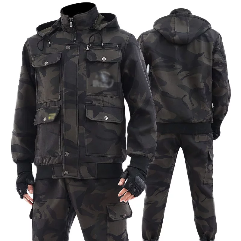 Chaqueta de camuflaje gruesa de terciopelo para hombre, traje de pantalones, ropa de trabajo de algodón para invierno, soldadores para exteriores, paño protector resistente al desgaste