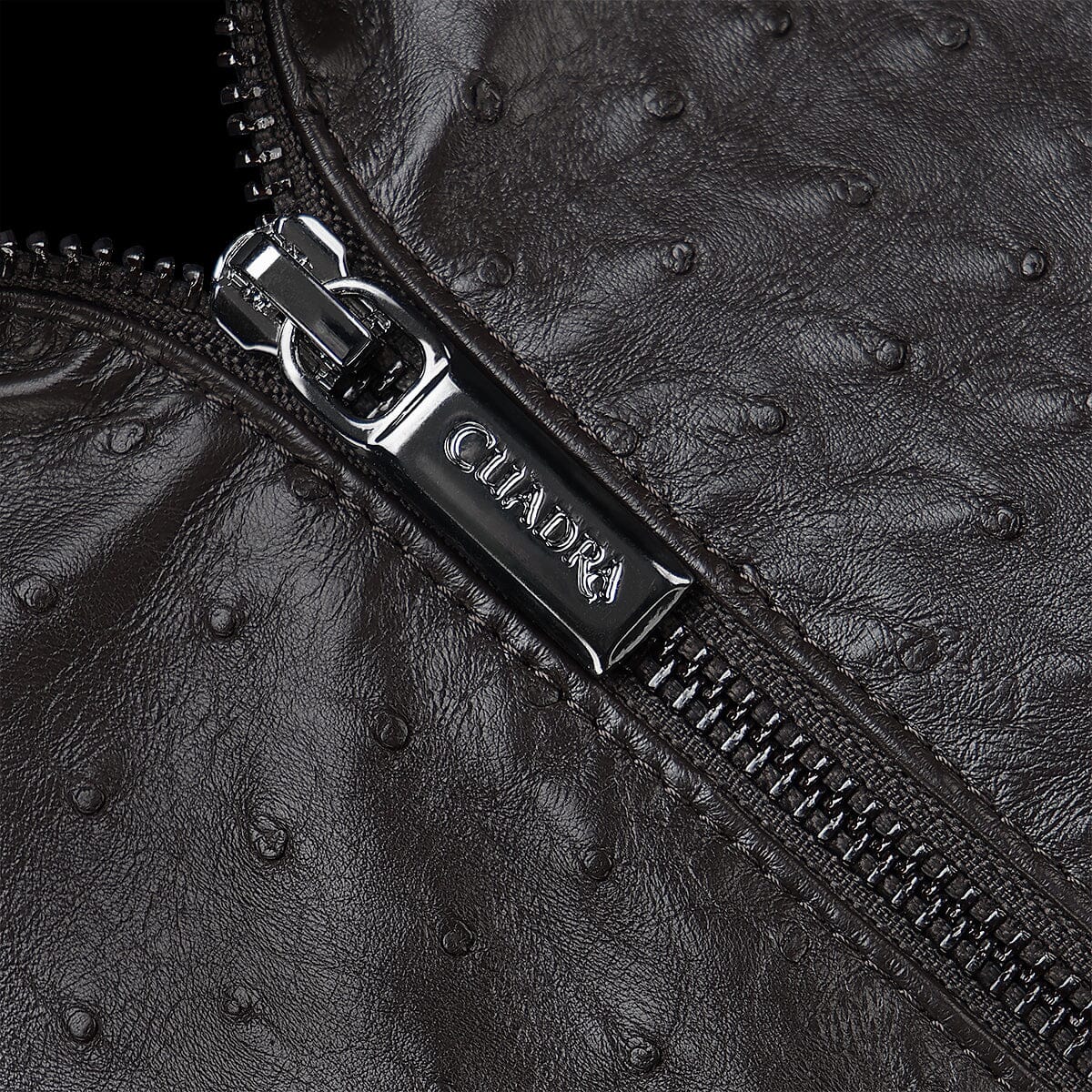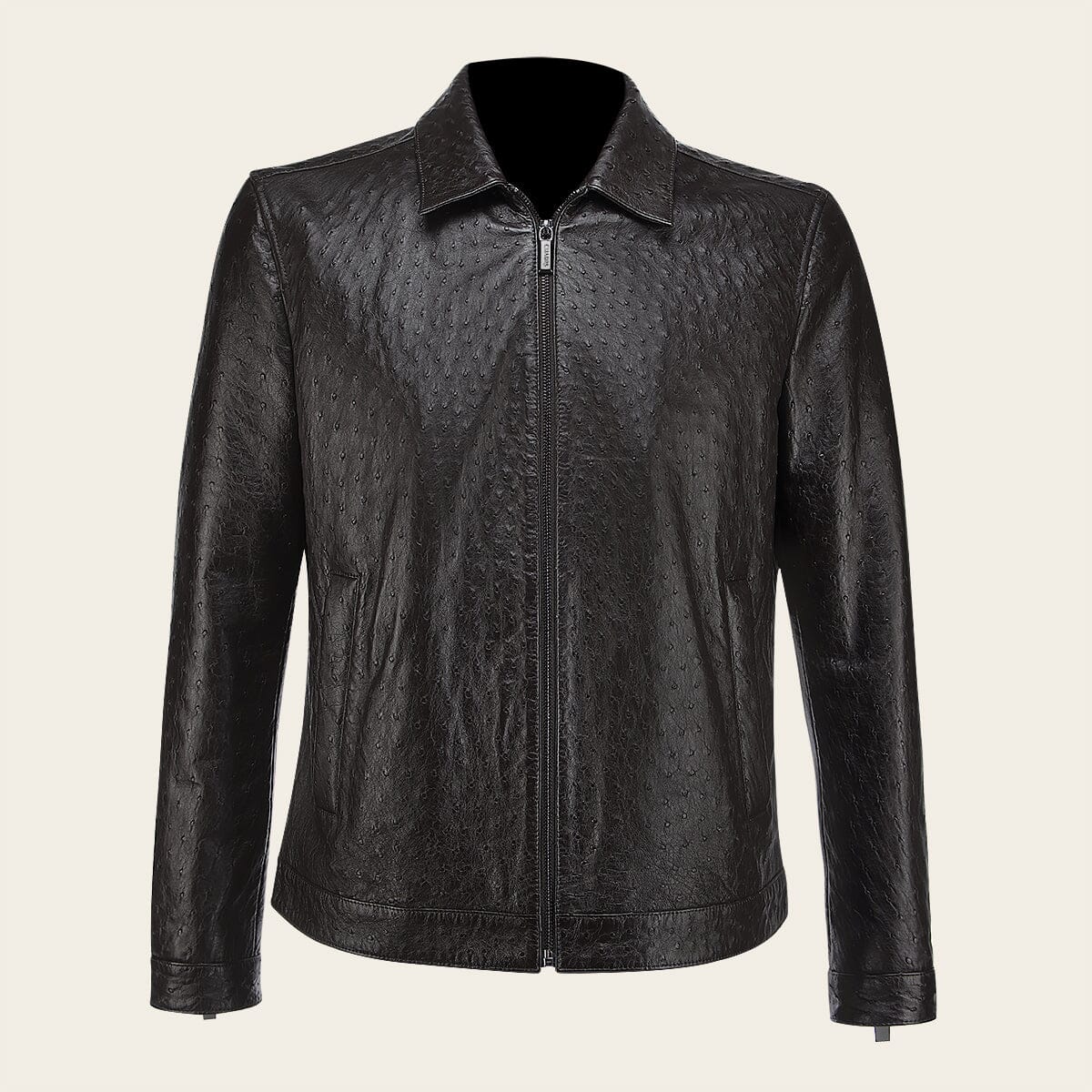 Chamarra Full exotic para caballero hecha 100% en piel genuina de avestruz. Presenta dos bolsillos laterales y dos internos, con cierre en mangas. Ajustada con cierre frontal.