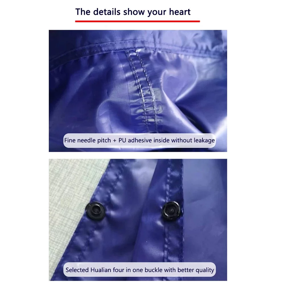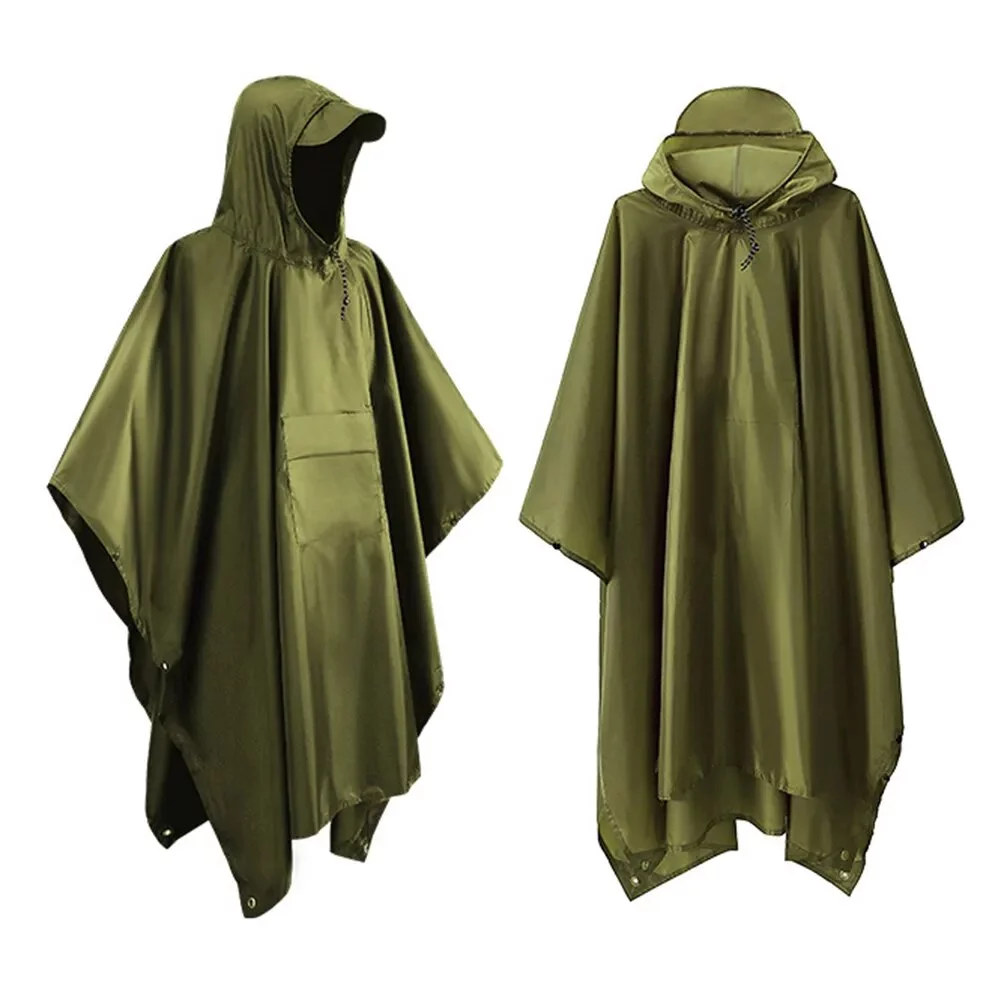 Especificación: Nombre del producto: poncho de lluvia multifuncional tres en uno Tela: POLIÉSTER + revestimiento de PU Uso: Senderismo al aire libreEmbalaje: Bolsa de almacenamiento Peso: 0,3 kg Tamaño: 213x 142cm/83,86 x 55,91in Nota: 1 poncho