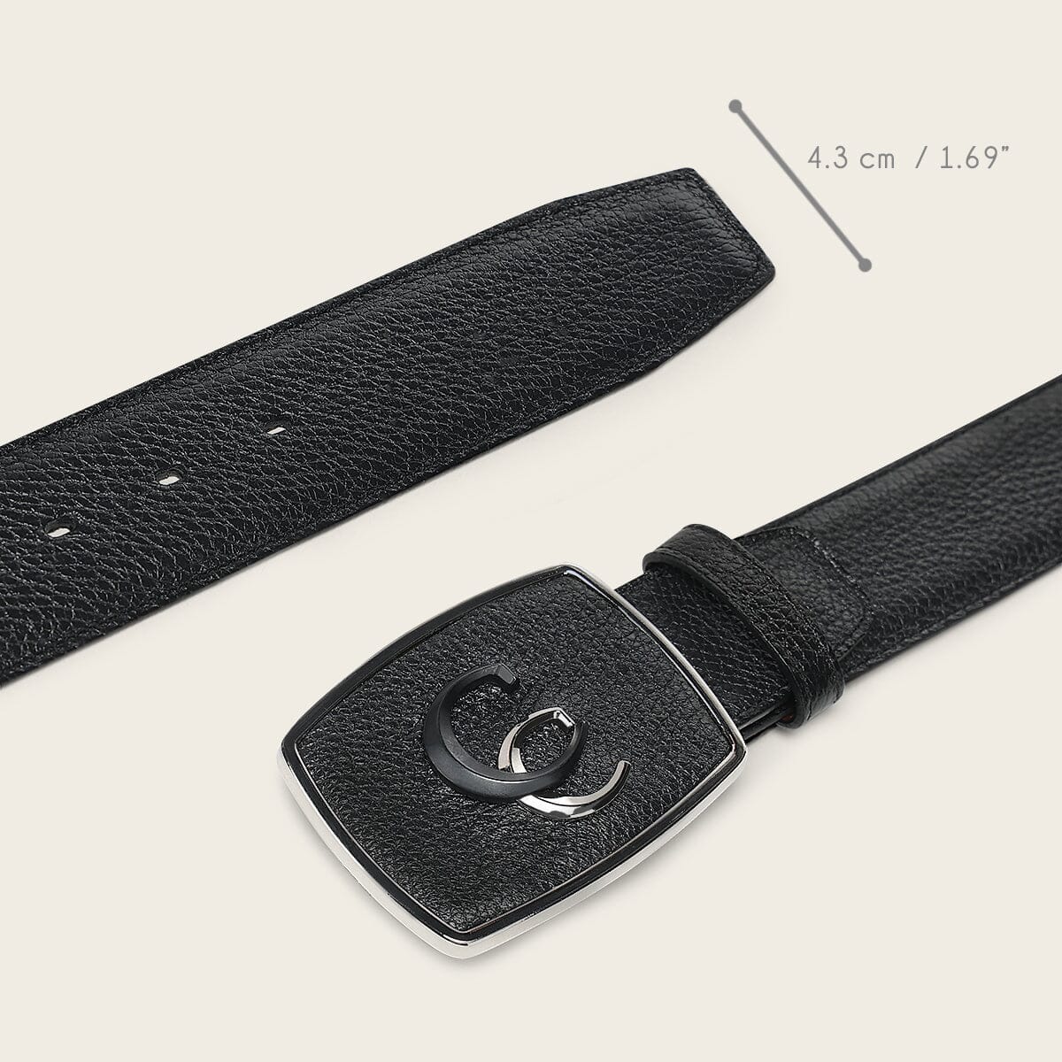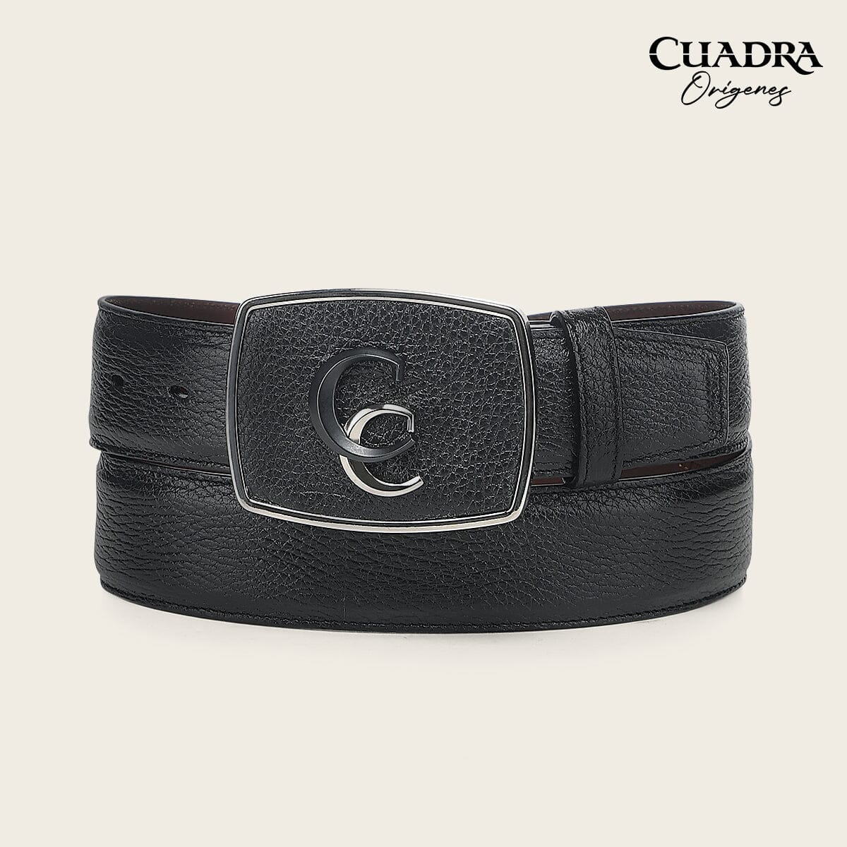 Cinturón vaquero Orígenes para caballero en piel genuina de venado italiano. Hebilla con aplicación metálica doble de monograma Cuadra. Con forro en piel de bovino.