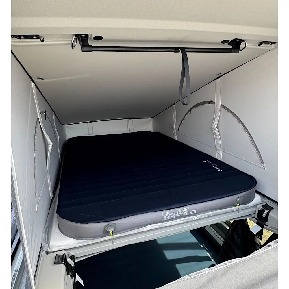 Disfruta de un descanso óptimo en tu furgoneta camper con este colchón inflable diseñado para VW California y MB Marco Polo. Disponible en dos tamaños para cama normal (115 cm) y cama ancha (150 cm), ofrece un equilibrio perfecto entre comodidad, resistencia y facilidad de uso, ideal para quienes buscan comodidad sin ocupar espacio extra.
