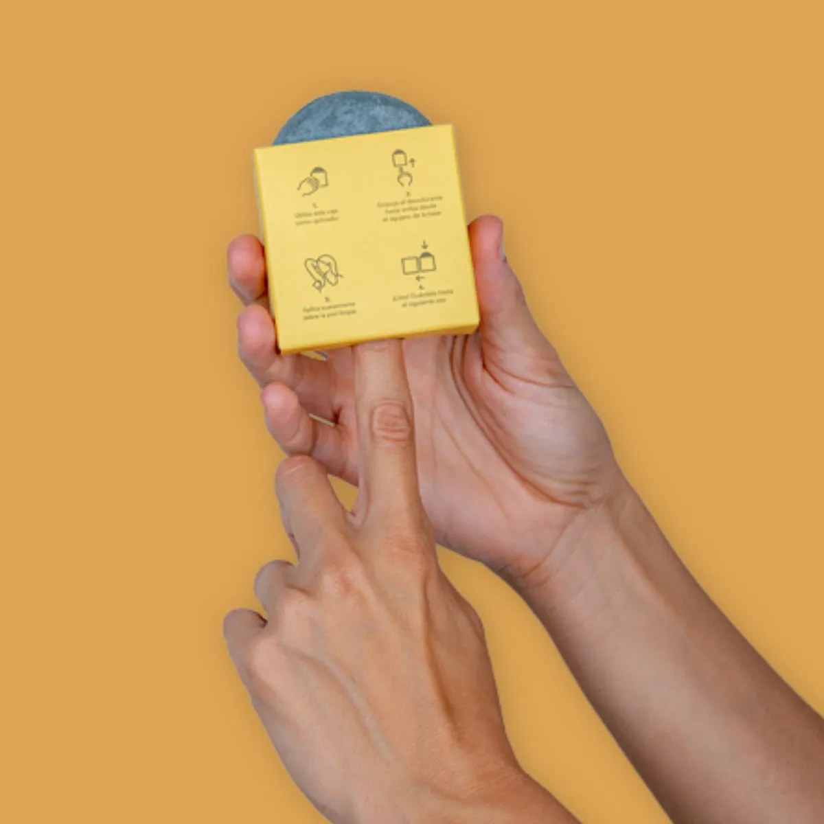 2. Utiliza la caja como aplicador abriéndola por el lateral e introduciendo el dedo por el agujero inferior para empujar el desodorante hacia arriba hasta que asome.