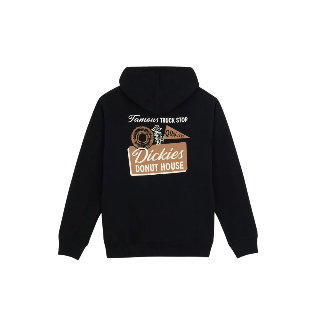 Dickies Donut House Hoodie es una sudadera con capucha de estilo retro inspirada en las paradas de camiones clásicas. Confeccionada en una mezcla de 80% algodón y 20% poliéster, ofrece un interior de forro polar suave y cálido. Presenta un gráfico “Donut House” en el pecho y la espalda, bolsillo canguro funcional y capucha ajustable con cordón. Su ajuste relajado y los puños acanalados garantizan comodidad en el uso diario. Ideal para looks urbanos y casuales, combina resistencia, autenticidad y el sello distintivo de Dickies en cada detalle.