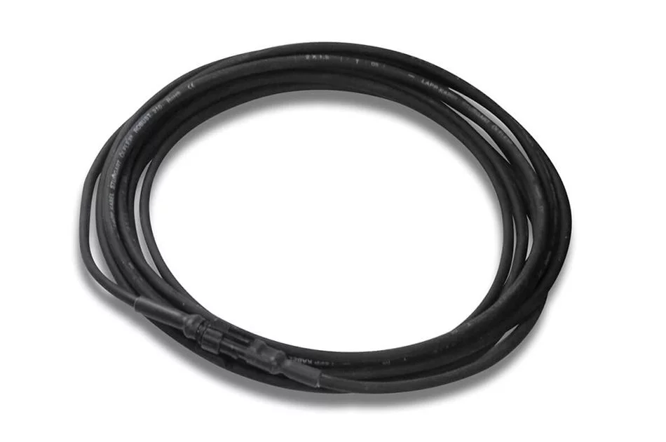 Cable manguera RVK 2x4mm² con terminales MC4 en los extremos.