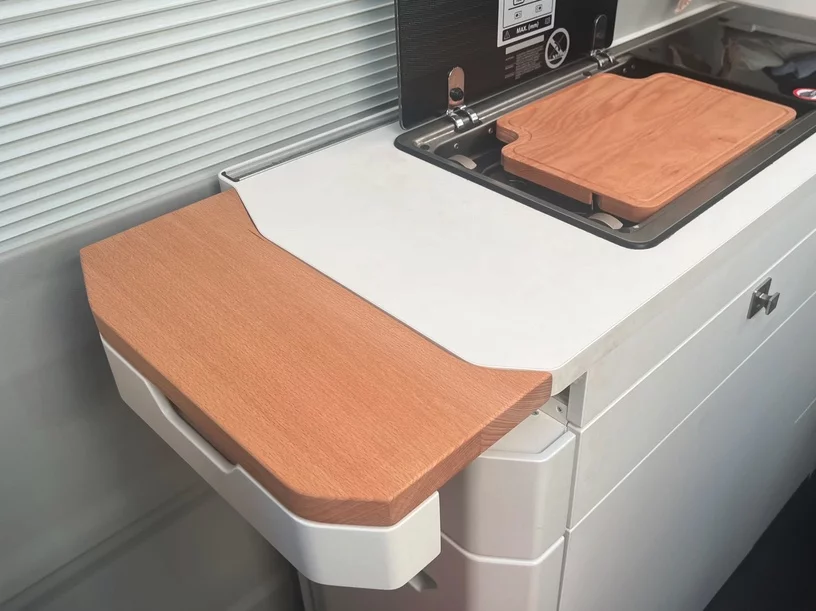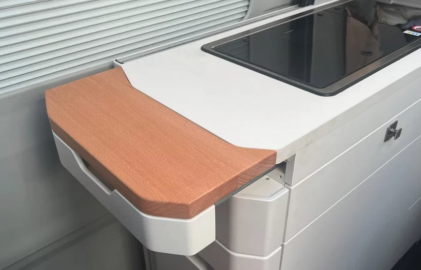 Extensión madera para encimera de cocina VW Grand California.