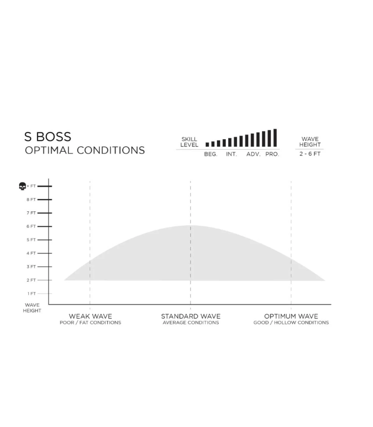 La S Boss es fruto de la búsqueda de Kelly Slater de una tabla de surf super high performance, que sea accesible para el rango más amplio posible de niveles de surf y tipos de olas.