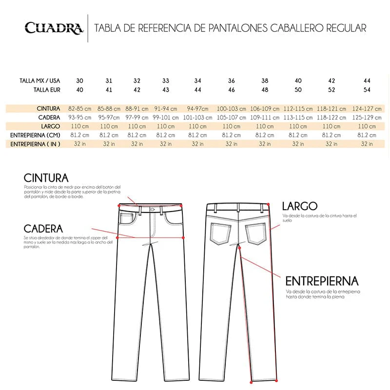 Jeans Cuadra para caballero. Presenta aplicación de hule y piel de bovino grabada en la parte trasera logotipo Cuadra. Con sutil acabado deslavado al frente.