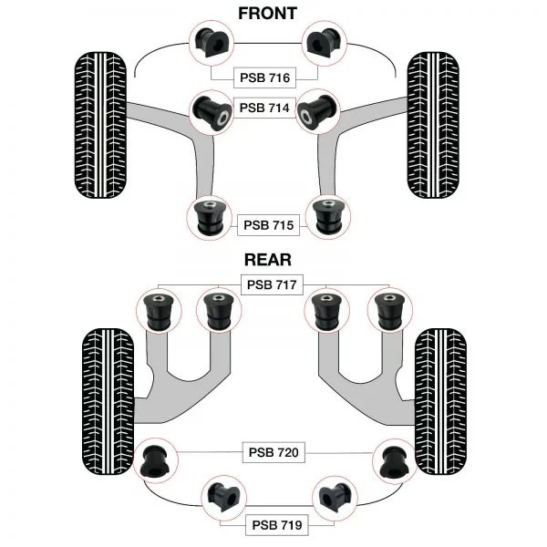 Los silentblocks de poliuretano son más fuertes y duran más que los silentblocks de goma estándar. La mayoría de los vehículos de producción modernos están diseñados con silentblocks de goma que tienen una vida útil limitada. Esto contribuye al fallo de la suspensión debido al peso del vehículo y al diseño inherente de las suspensiones de alta tecnología. Típicamente esto resulta en una conducción del vehículo poco deseable y puede causar que muchas partes relacionadas se desgasten más rápidamente de lo necesario. El poliuretano corrige este problema y en muchos casos mejora el manejo y la conducción del vehículo.