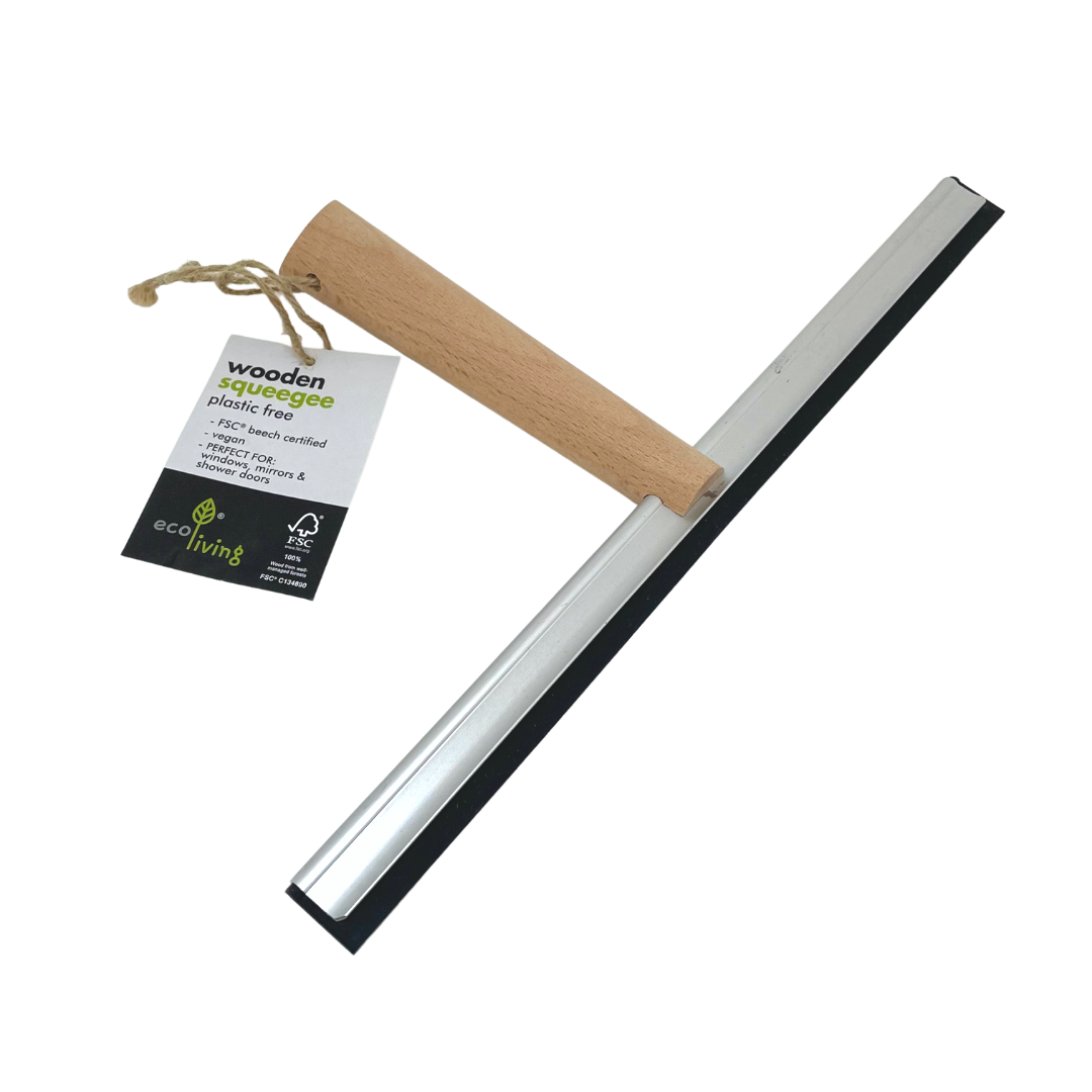 El limpiacristales de madera de haya y silicona es una gran herramienta para todas las superficies de tu baño y cocina. 100% libre de plástico.