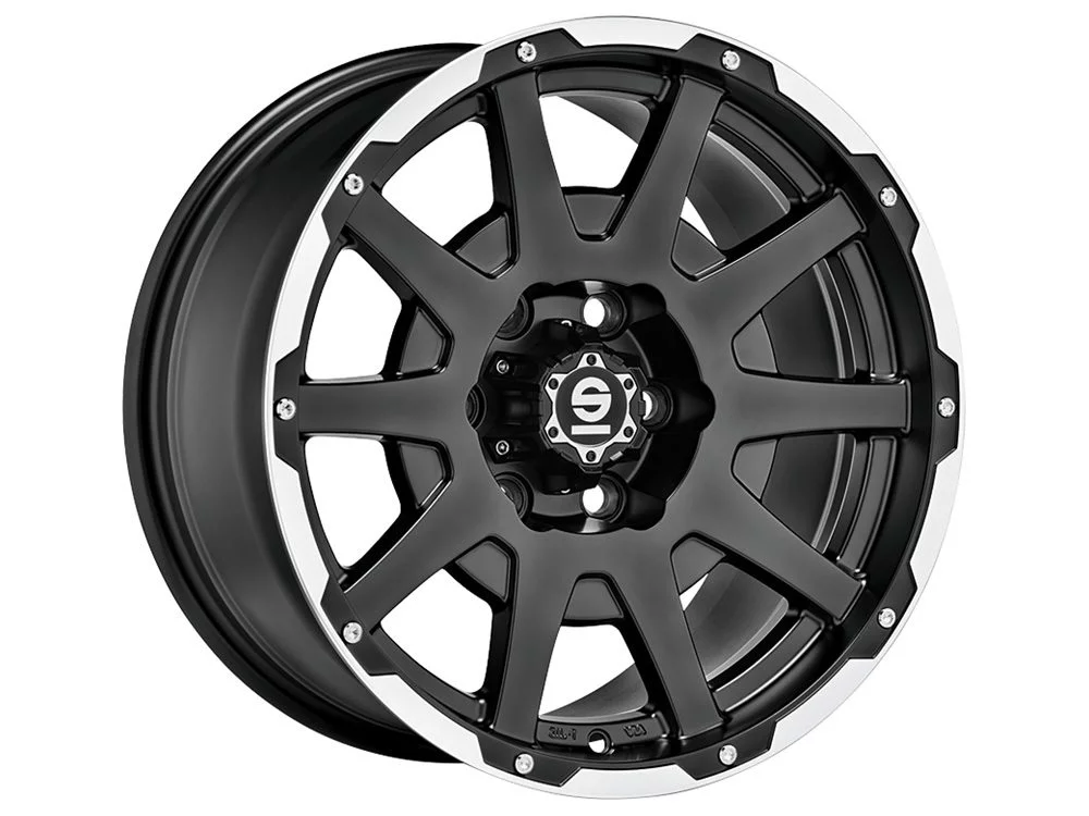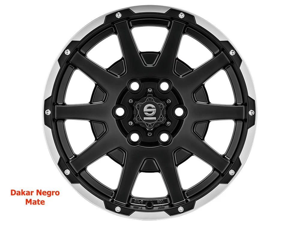 - Sparco Dakar está disponible para una gama de furgonetas en los tamaños 7,5×17″, 8,5×17″ y 8,5×18″ en 5 y 6 agujeros y en el acabado único Negro Mate Labio pulido + remaches.