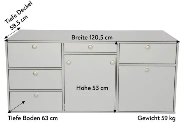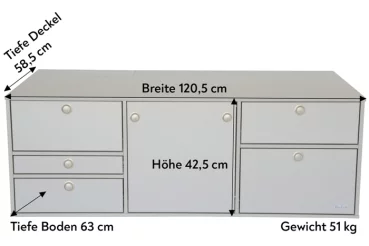 - Dimensiones: L 120,5 cm x profundidad 58,5 cm x H 42,5/53/56/ cm
