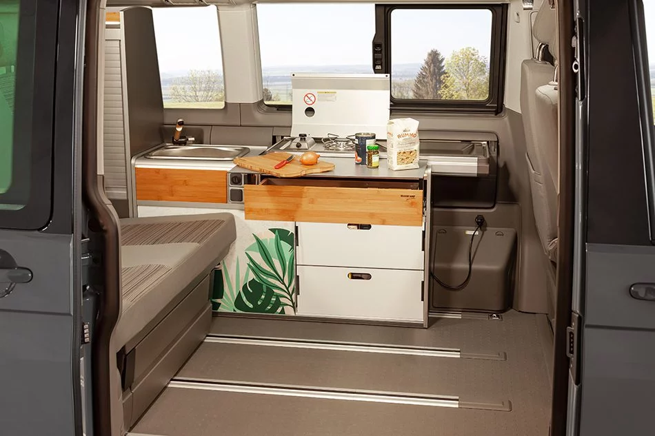 • Modelo compatible: VW California Beach Camper (2 plazas traseras + hornilla VW integrada)