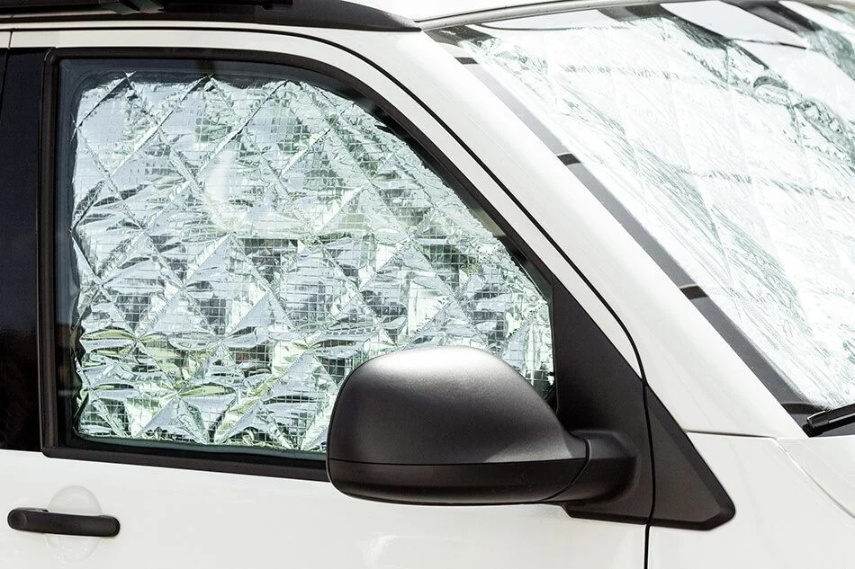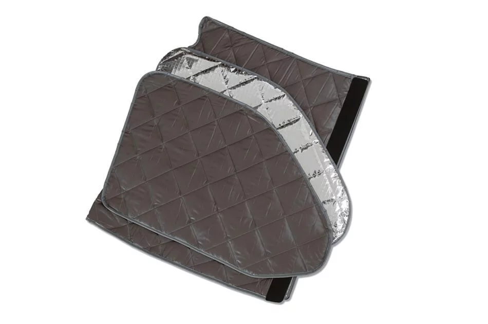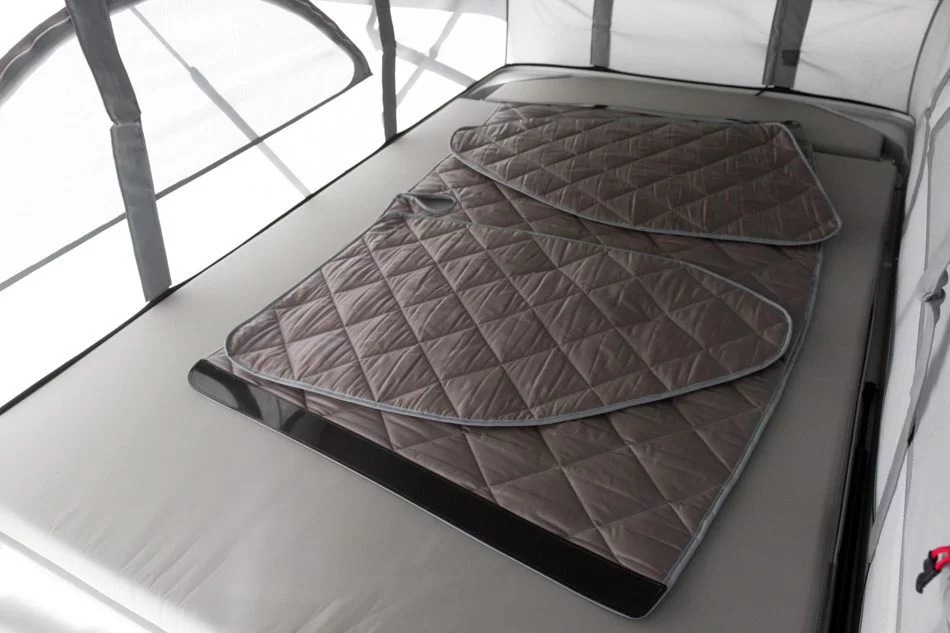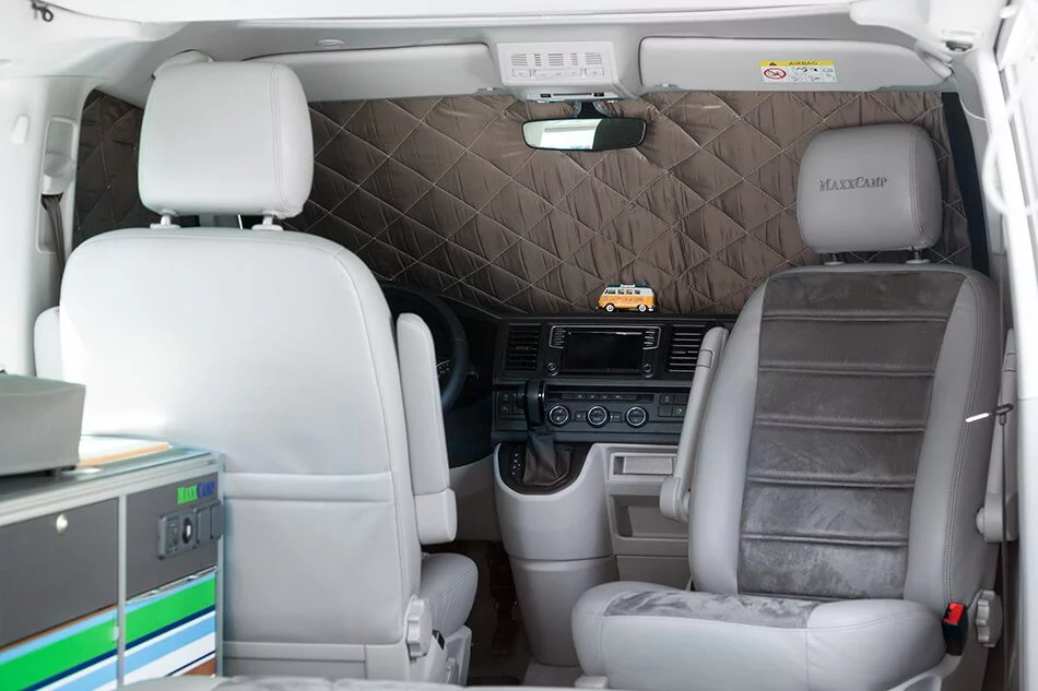 Mediante una rápida fijación magnética a la carrocería, los oscurecedores térmicos se montan en poco tiempo y cuando no están en uso se guardan en una práctica bolsa o extendidos en la cama superior.