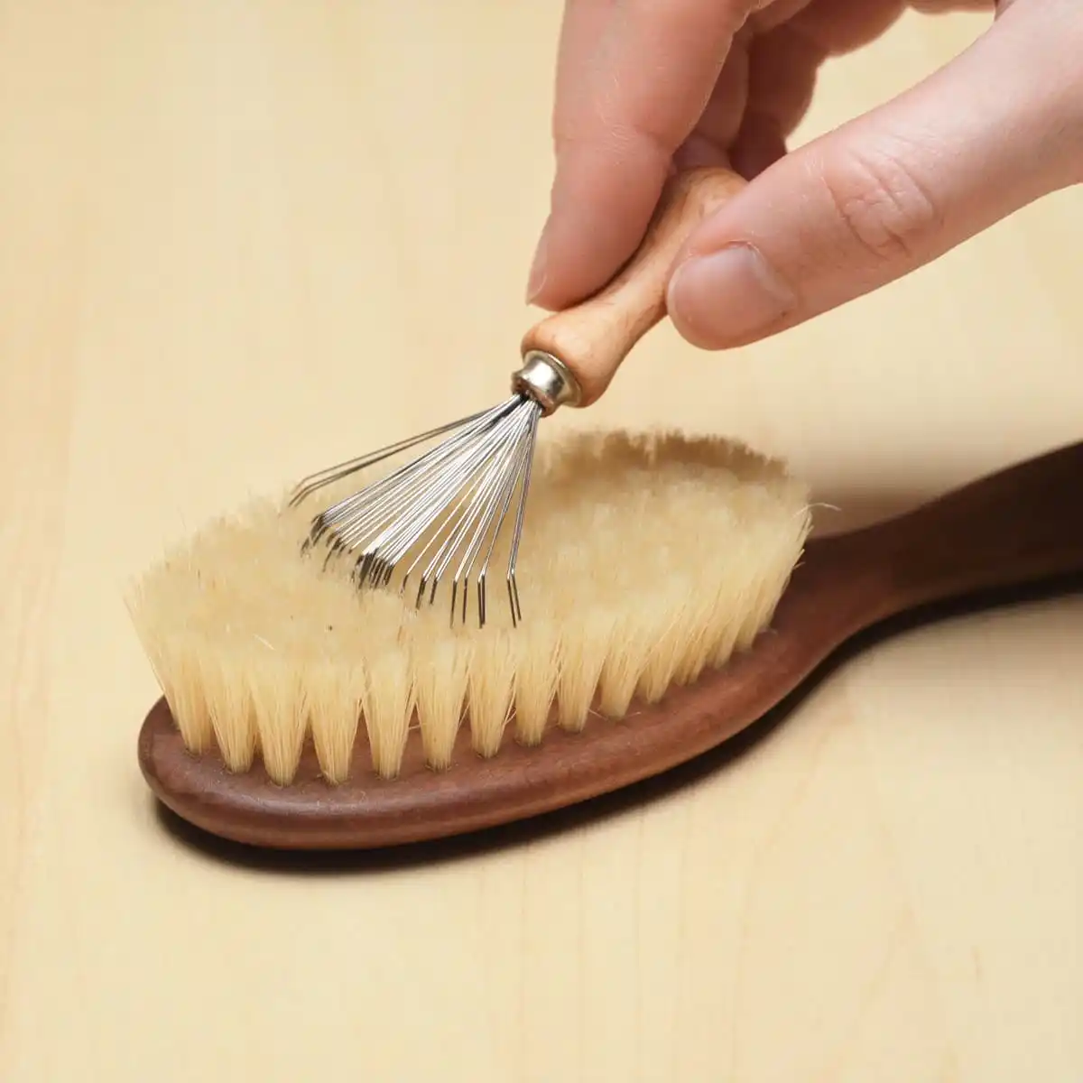 - Púas muy flexibles de alambre que llegan hasta la base de todos los cepillos y con tan sólo un par de pasadas, arrastran todos los pelos, polvos, restos de producto y la suciedad que se haya podido acumular.