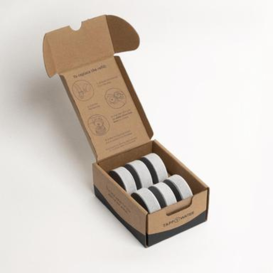 - El bloque de carbón que se encuentra dentro de la carcasa del cartucho y que filtra tu agua está hecho de cáscaras de coco (70%), que se biodegrada en CO2 y agua, y UHMW (30%), que es inerte y estable y no se acumula en la vida marina.