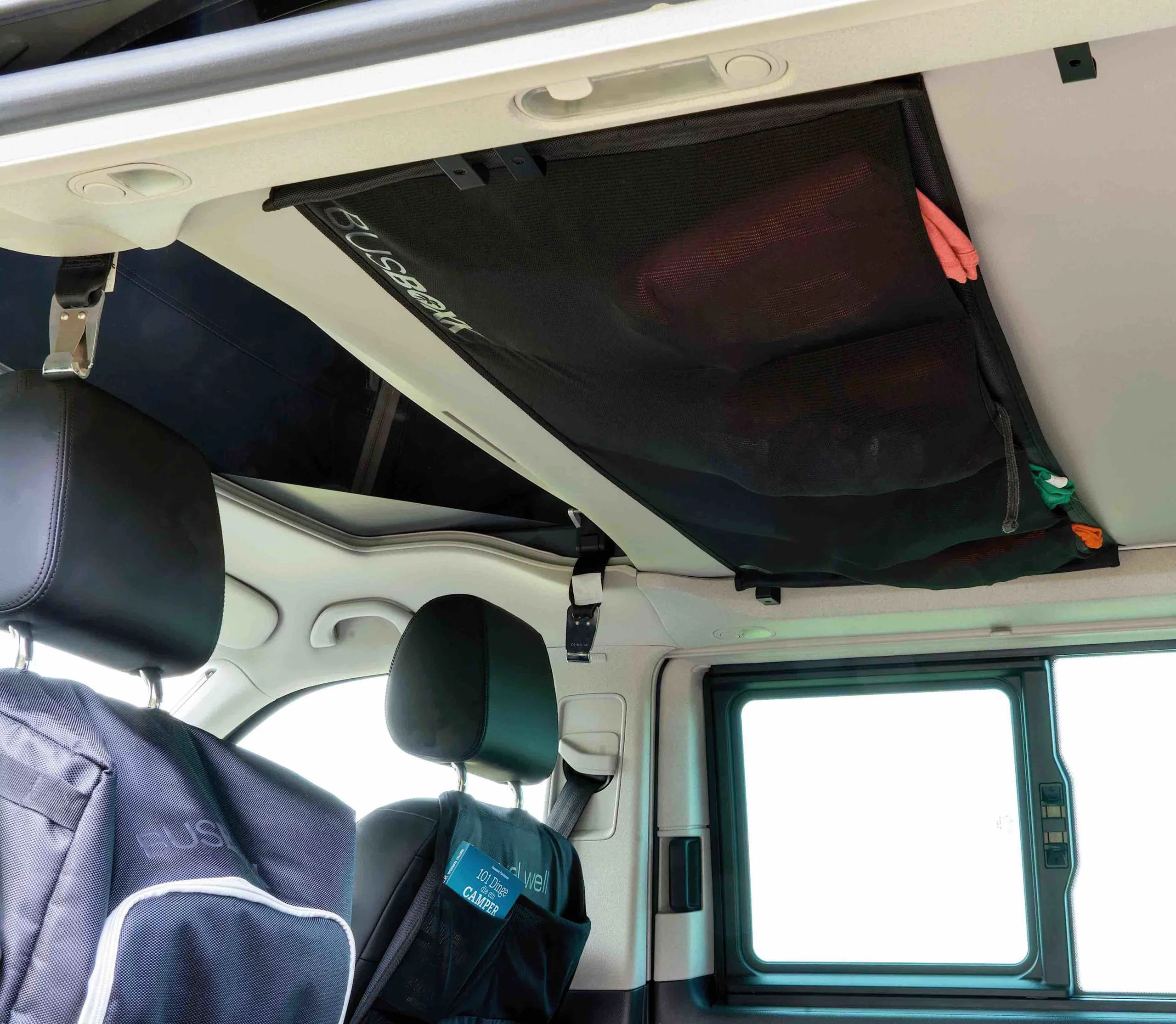 La Red de Techo-Cama es la solución ideal para ganar espacio de almacenamiento adicional en tu camper sin restar comodidad ni movilidad. Se fija de forma sencilla a la parte inferior de la cama elevable mediante cintas correderas, permitiendo una instalación rápida, segura y sin herramientas. Su diseño inteligente incorpora cuatro compartimentos independientes, perfectos para guardar objetos de uso frecuente como ropa ligera, linternas, libros, cargadores, accesorios personales o elementos de viaje bien organizados y siempre accesibles.
