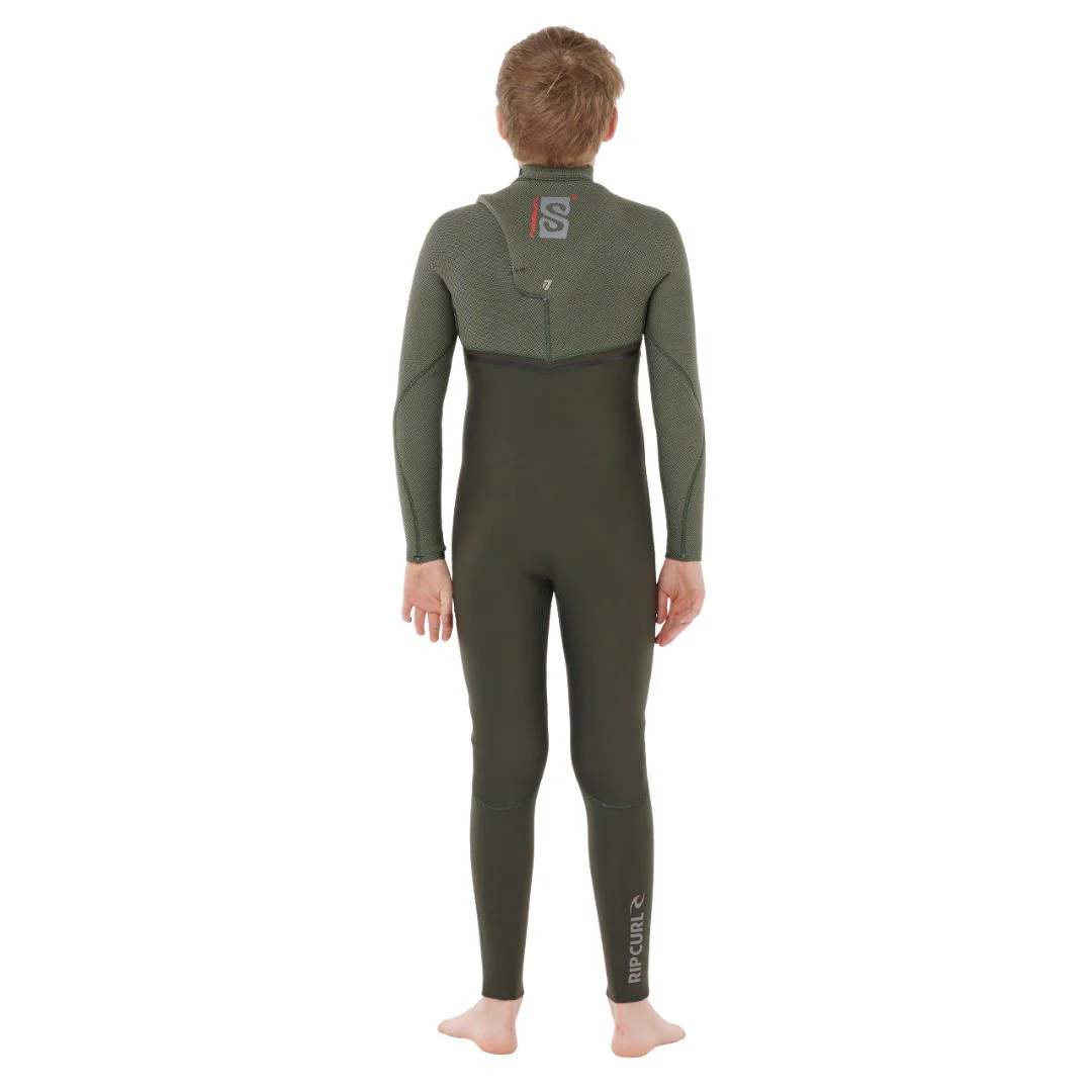 El traje de neopreno Rip Curl Kids Flashbomb Pro Chest Zip 4/3 2026 está diseñado para jóvenes surfistas que buscan rendimiento técnico en aguas frías. Incorpora Fusion Dry Seam Technology que evita filtraciones, junto con E7 Flash Lining para máxima calidez y secado ultrarrápido. Su sistema de entrada Chest Zip facilita el uso, mientras que los puños sellados y costuras reforzadas ofrecen mayor protección. Ideal para temperaturas de 10 °C a 17 °C, con tallas disponibles para niños y adolescentes.