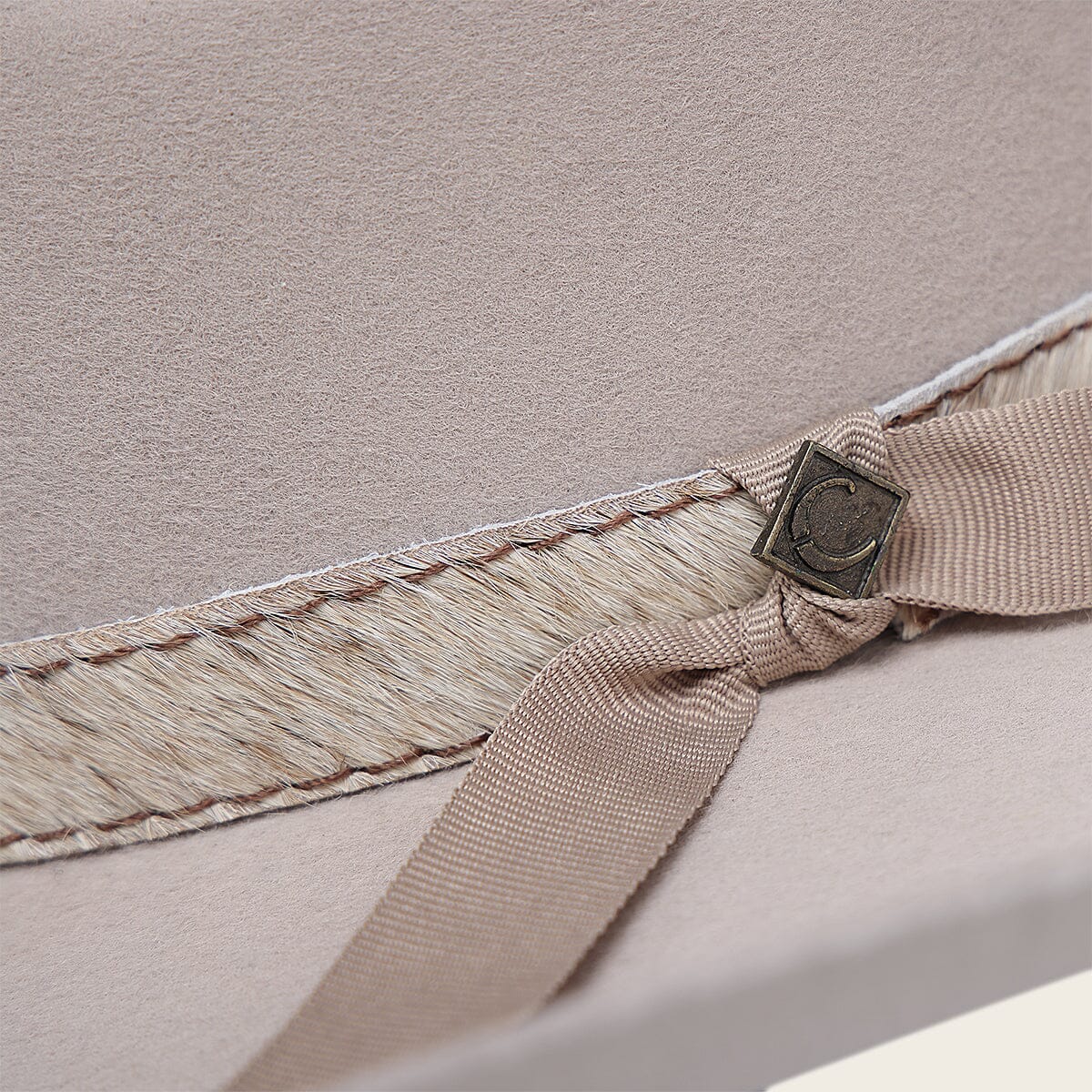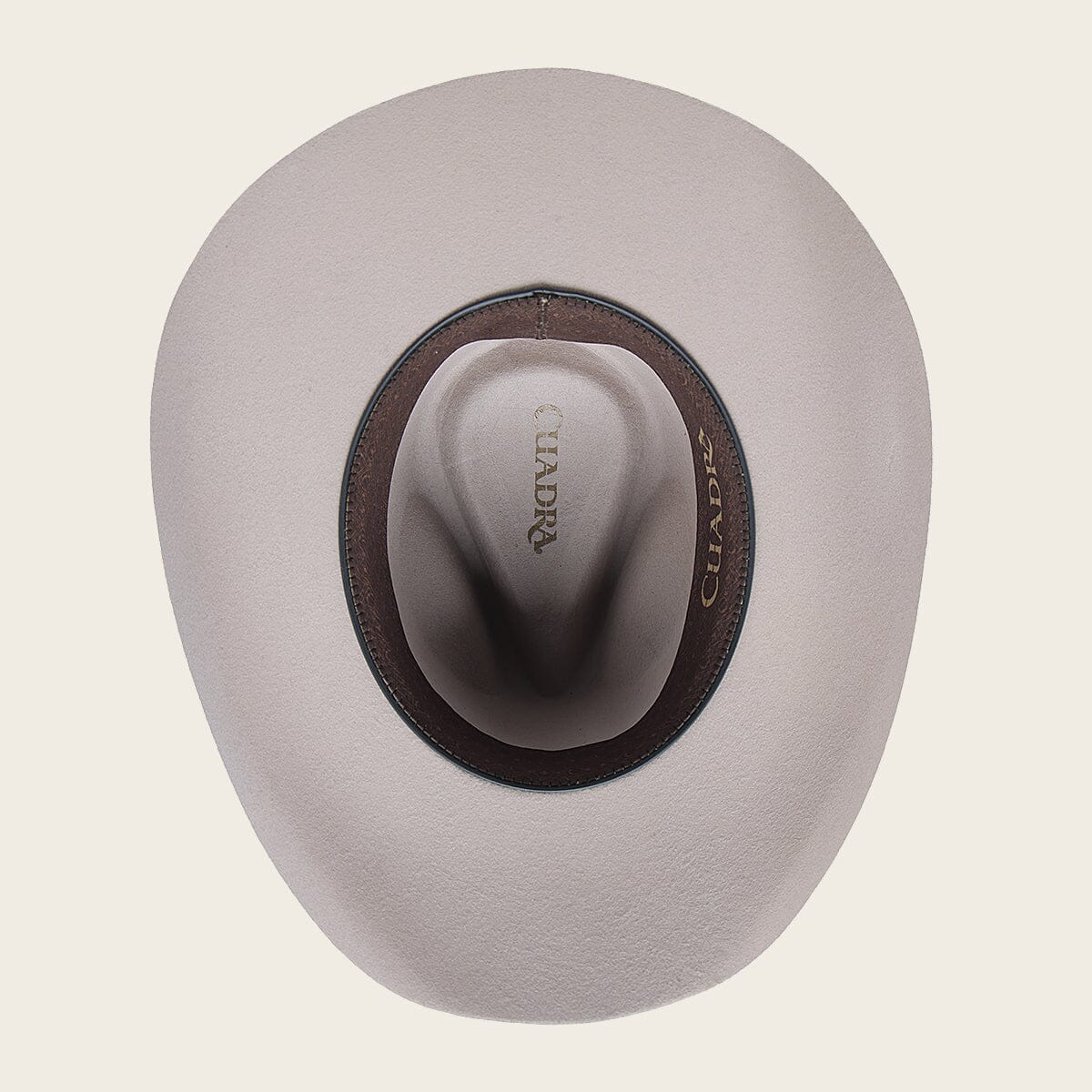Sombrero de lana unisex. Presenta toquilla en piel genuina de bovino, listón decorativo y aplicación metálica de monograma de Cuadra. Con forro de satín y tafilete en Drylex para control de humedad.