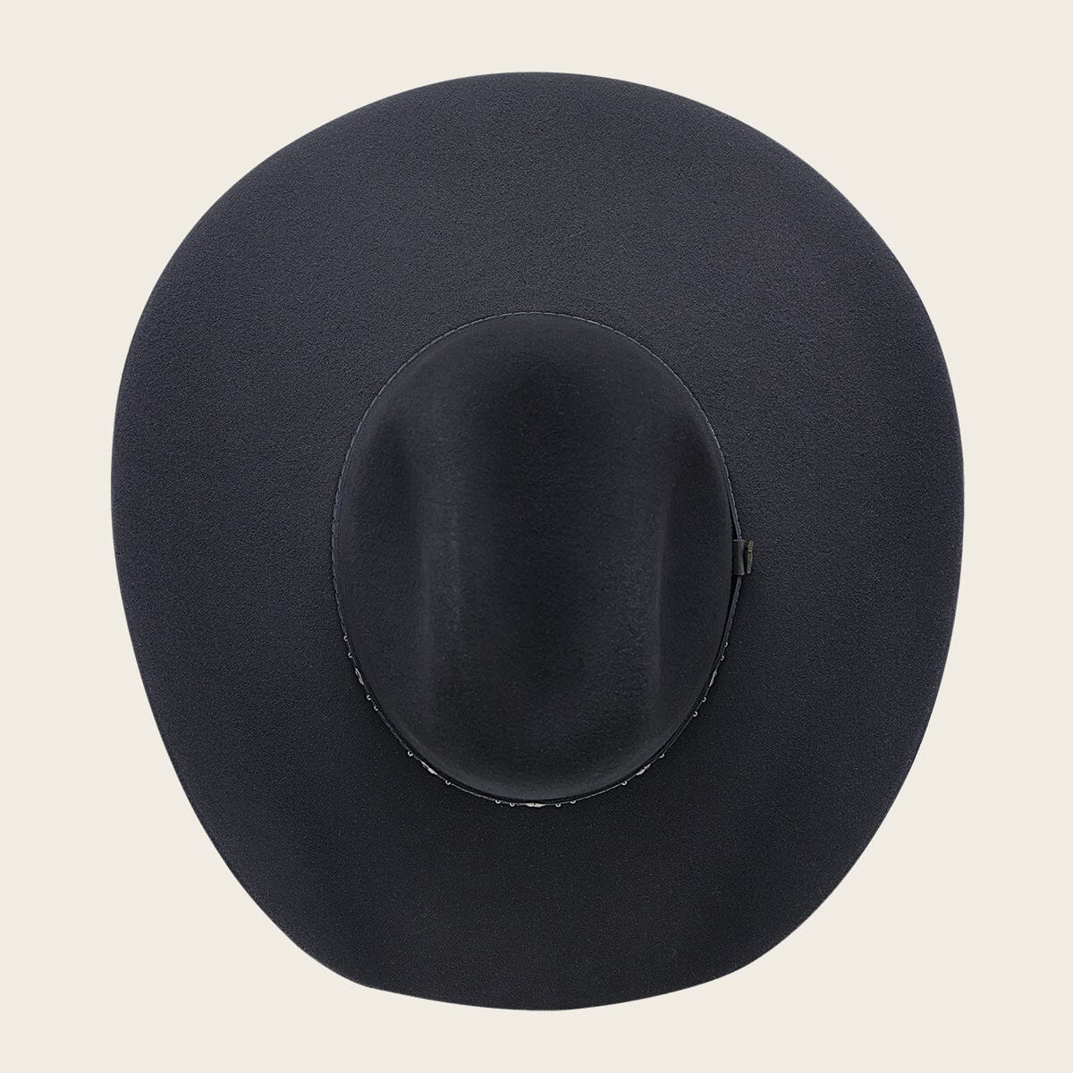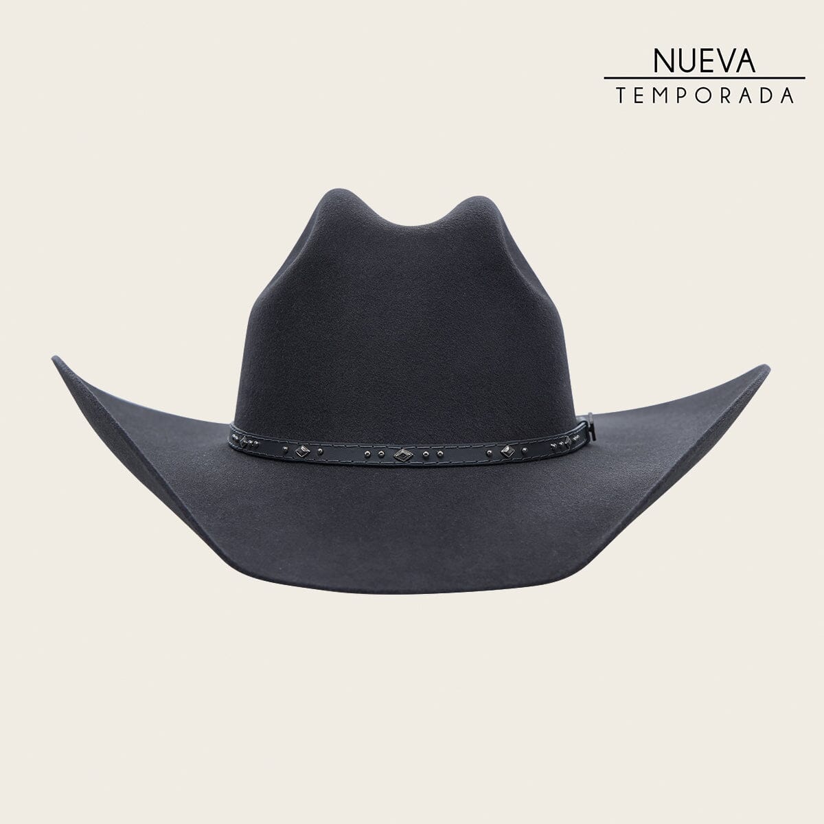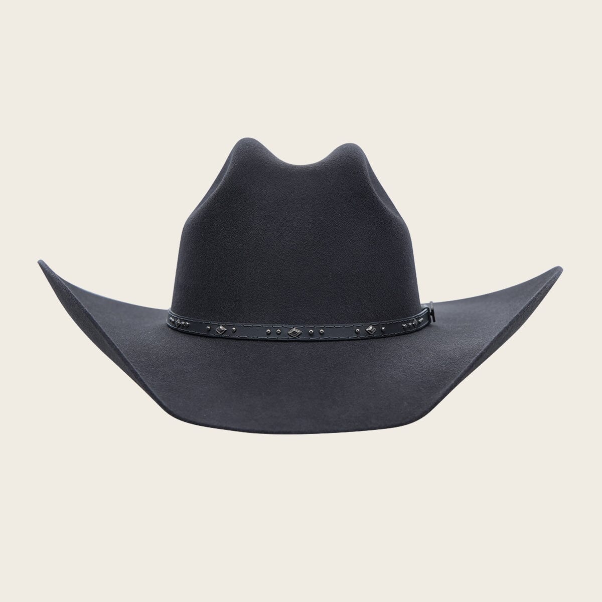 Sombrero de lana. Presenta ala de 4 pulgadas, toquilla en piel genuina de bovino con estoperoles. Con forro de satín y tafilete en Drylex para control de la humedad.