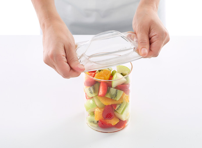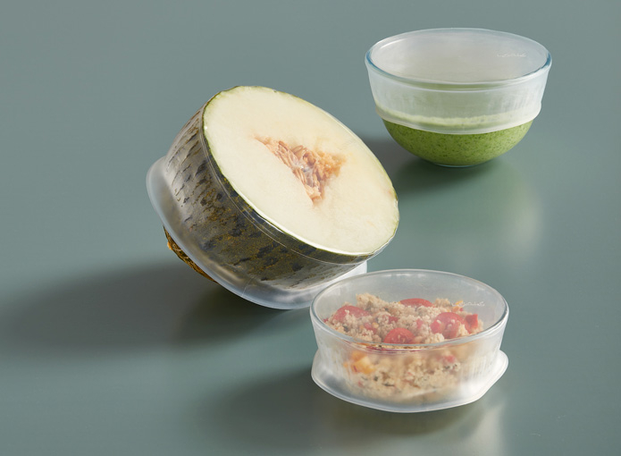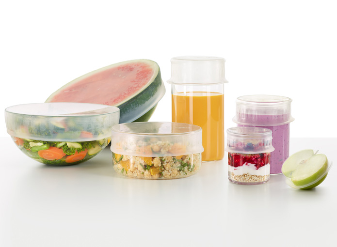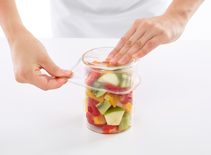 - Dos tapas extensibles reutilizables que permiten conservar herméticamente los alimentos en la nevera de manera fácil, evitando la contaminación de olores y alargando su frescura.