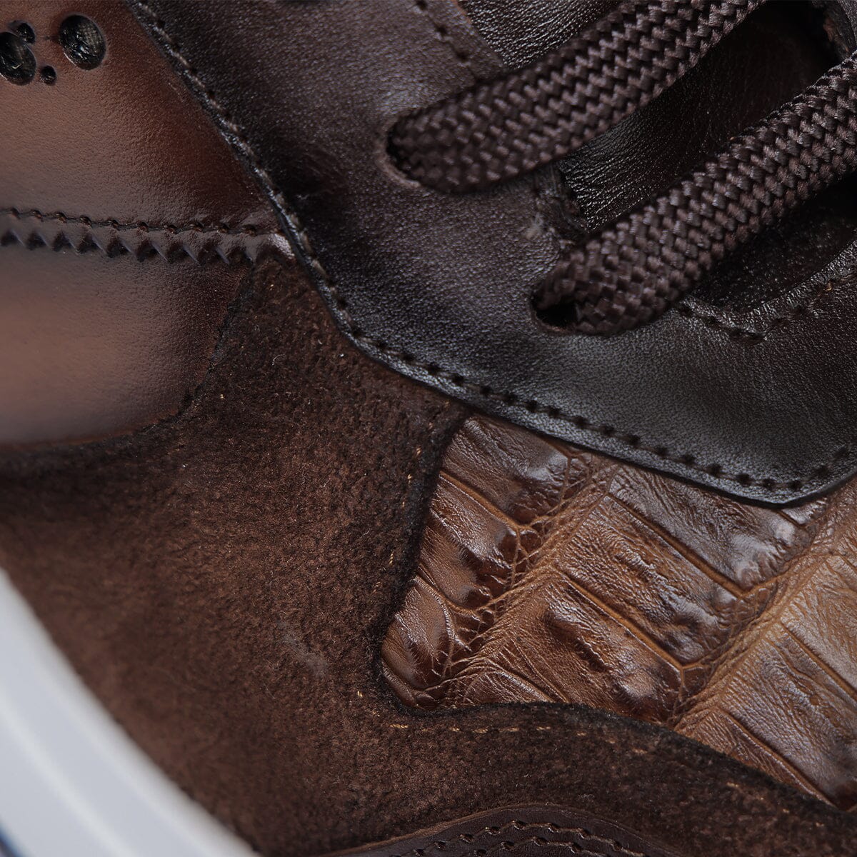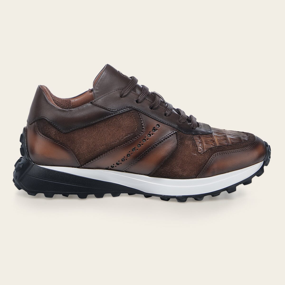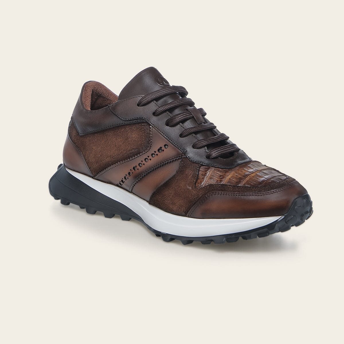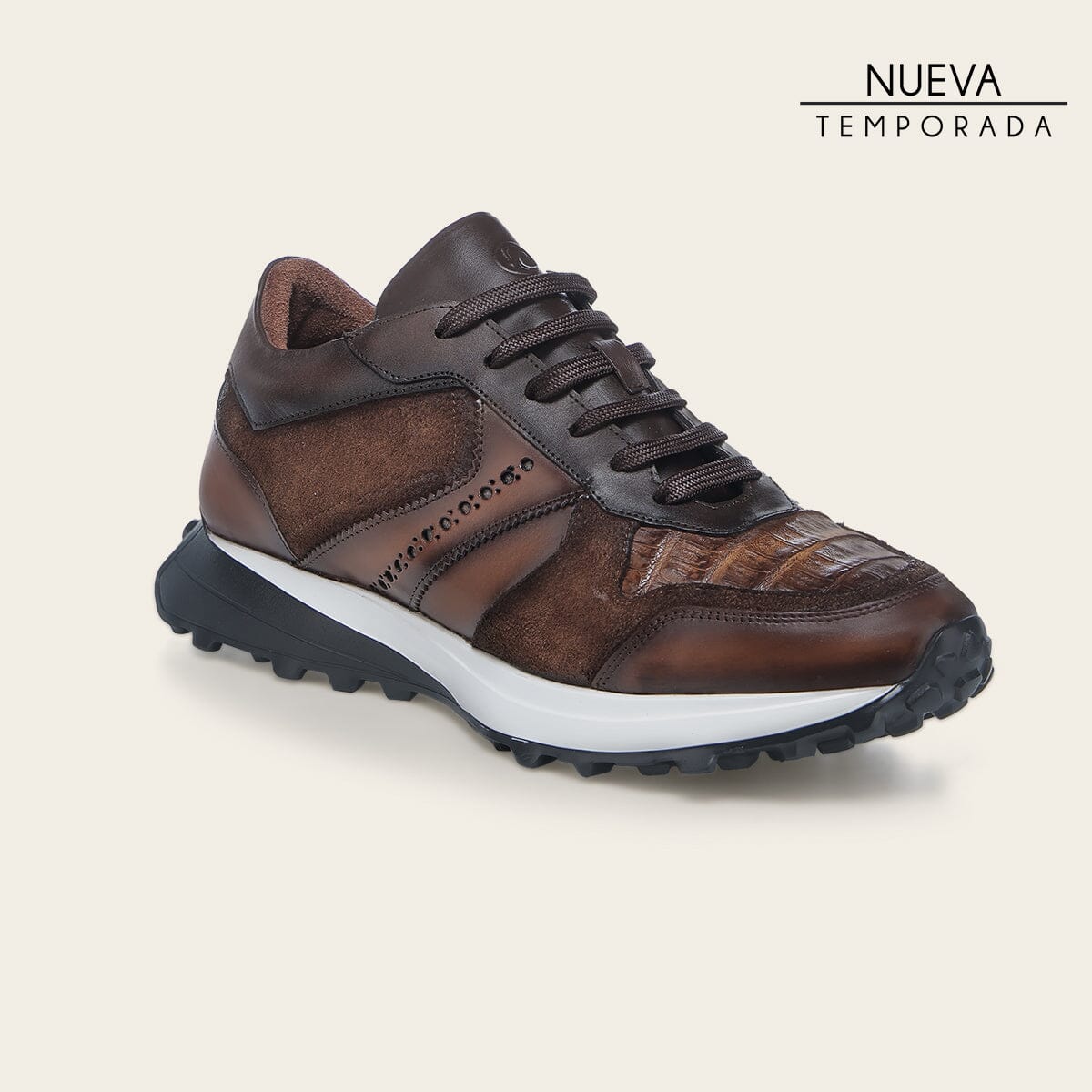 Tenis para caballero en piel genuina de caiman y piel bovino. Ajustados con agujetas. Con suela bi color inyectada XL EXTRALIGHT® DUAL COLOR compuesta de EVA, reconocida por su ligereza, resistencia al calor, flexibilidad y confort