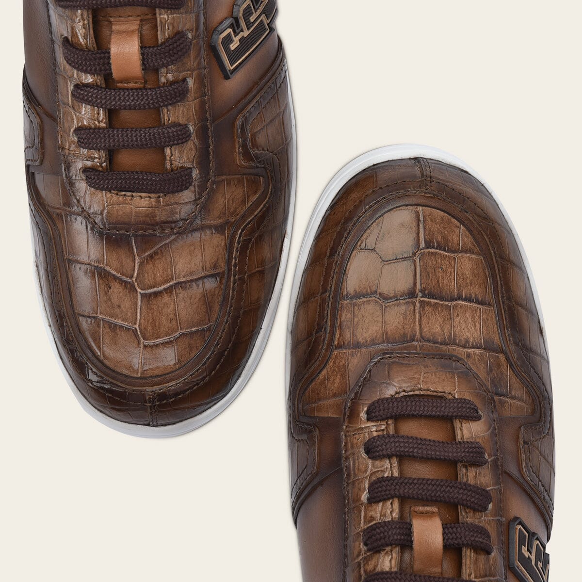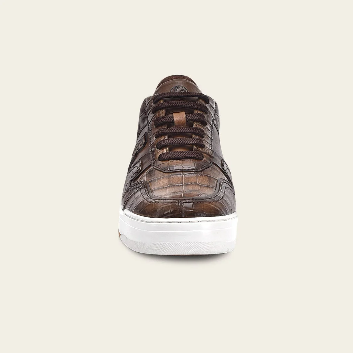 Sneakers para caballero en piel genuina de cocodrilo. En un costado presenta aplicación de TPU de monograma Franco Cuadra. Ajustados con agujetas frontales. Con suela de hule.