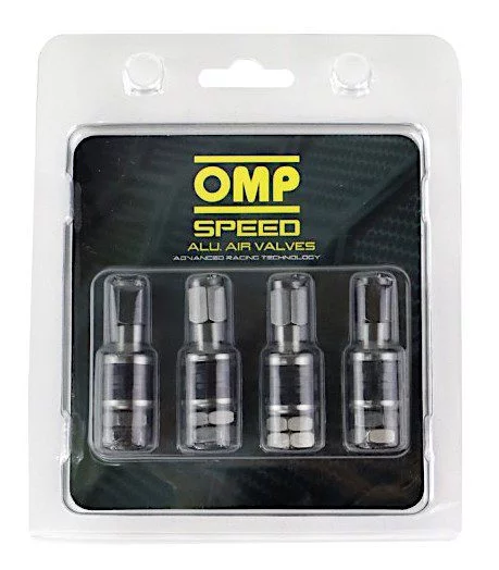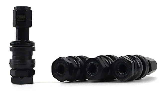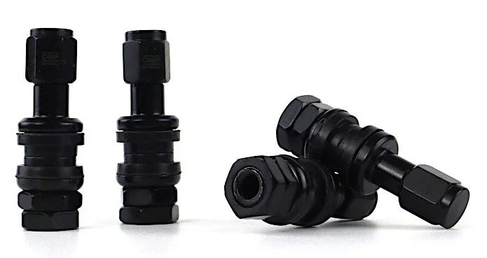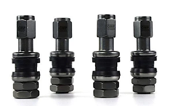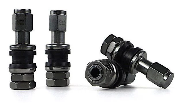 Válvulas de aluminio OMP para llantas en color antracita o negro mate.