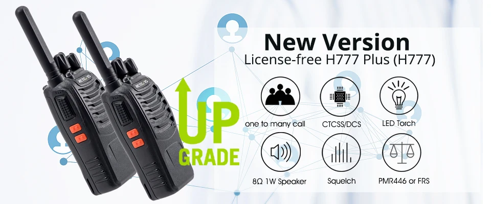 No hay problema legal ni tarifas de uso de frecuencia adicionales. La versión PMR H777 plus está libre de lisencia para Europa