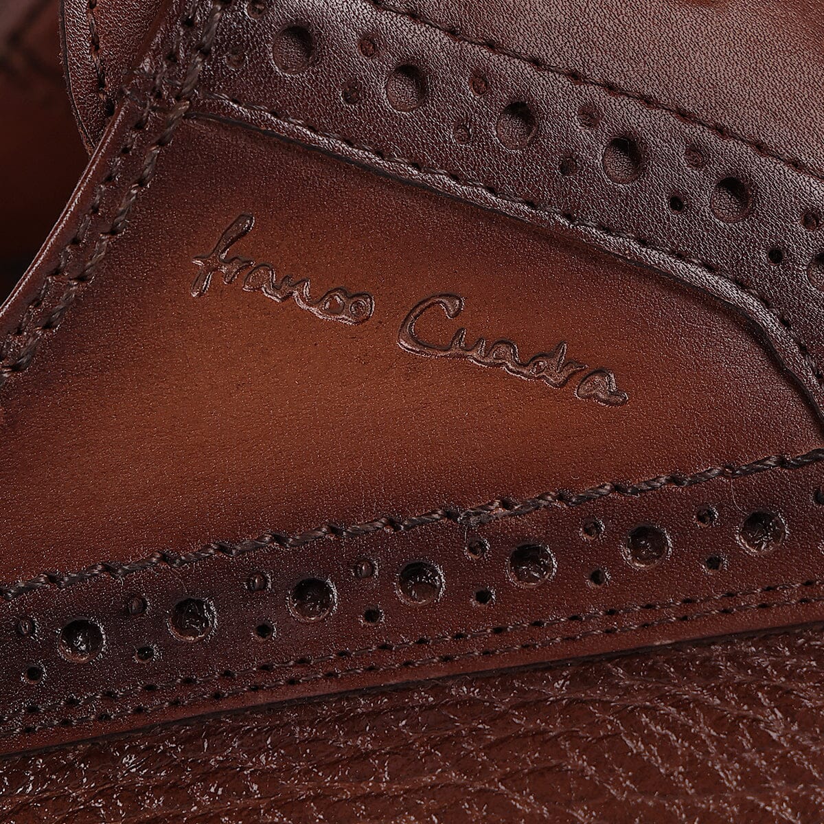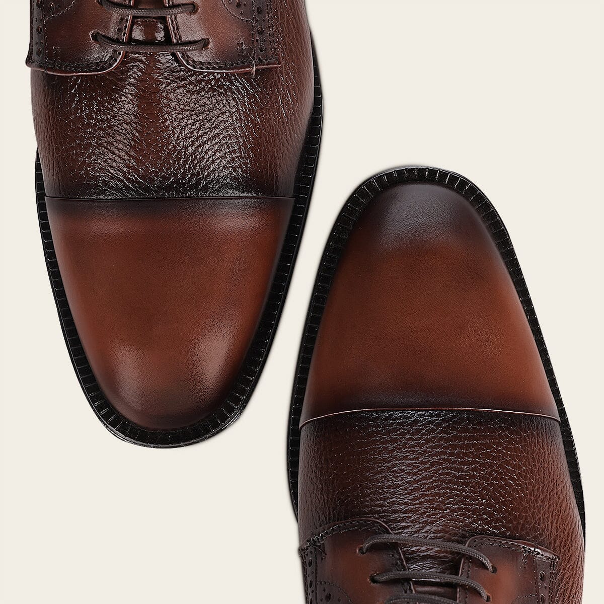 Zapato de vestir para caballero en piel genuina de venado y bovino. Presenta sombreado pintado a mano así como detalles de brocado y contraste de texturas. Cuenta con sutil grabado Franco Cuadra al costado. Ajustados con agujetas. Suela de de cuero con injerto de TPU.